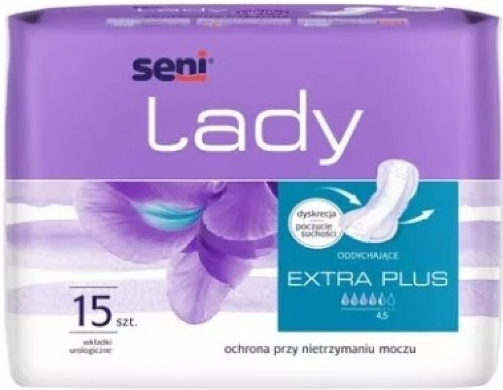 Prodyšné, anatomicky tvarované inkontinenční vložky pro ženy Seni Lady Extra Plus představují perfektní ochranu při lehké inkontinenci a zajišťují: