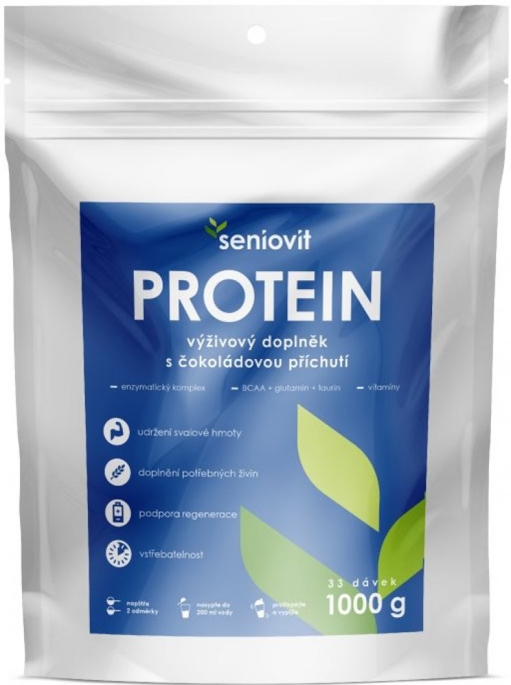 Seniovit 1000 g práškové 24.15 g 30.0 g 33 ks 112.3 kcal L-glutamin, taurin, enzymy, vitaminy, sladidla syrovátkový koncentrát, syrovátkový izolát, L-glutamin 15.0 g/100 ml