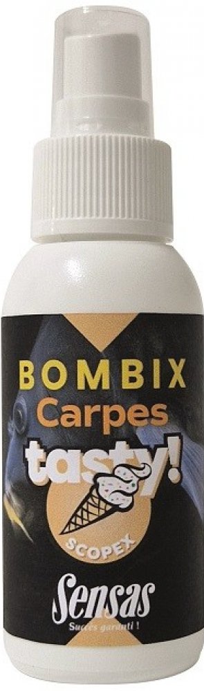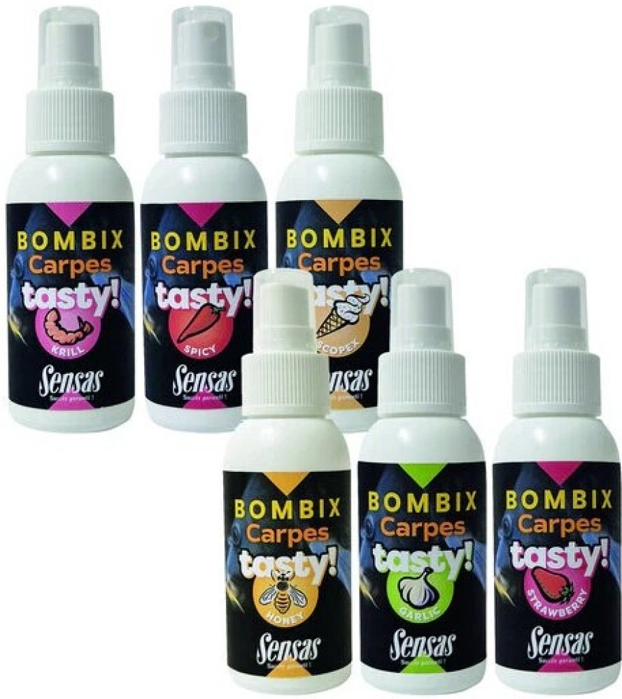 Bombix Carp Tasty je tekutý posilovač ve spreji zaměřený na lov kaprů. Má velmi intenzivní a pronikavou vůni. Bombix dodává nástraze nebo krmení okamžitou zvýšenou atraktivitu a vůni. Má i vizuální barevný efekt. Kolem nástrahy se ve vodě tvoří lákavý barevný obláček. Na nástraze dlouho vydrží a postupně uvolňuje ve vodě vůni do okolí. Lze ho aplikovat na celou řadu nástrah, jako je boilies, pelet...