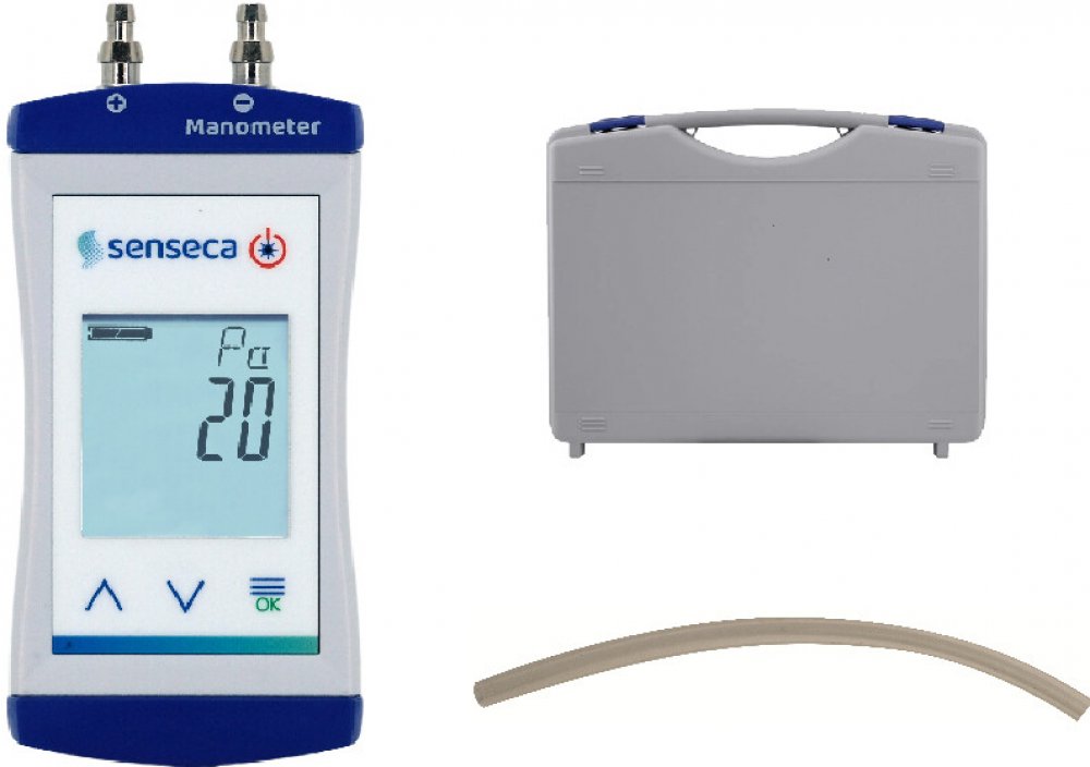 SENSECA ECO 210-3-UT-SET8 je jemný diferenční manometr pro použití v oblasti HVAC (topení/ventilace/klimatizace) s rozsahem měření až 200 hPa (mbar) ~ 20 kPa a vysokým rozlišení až 0,1 Pascalu v optimalizovaném režimu jemného tlaku FINE. Dodáván včetně kufru GKK 1002 a tlakové silikonové hadice.