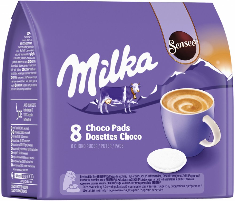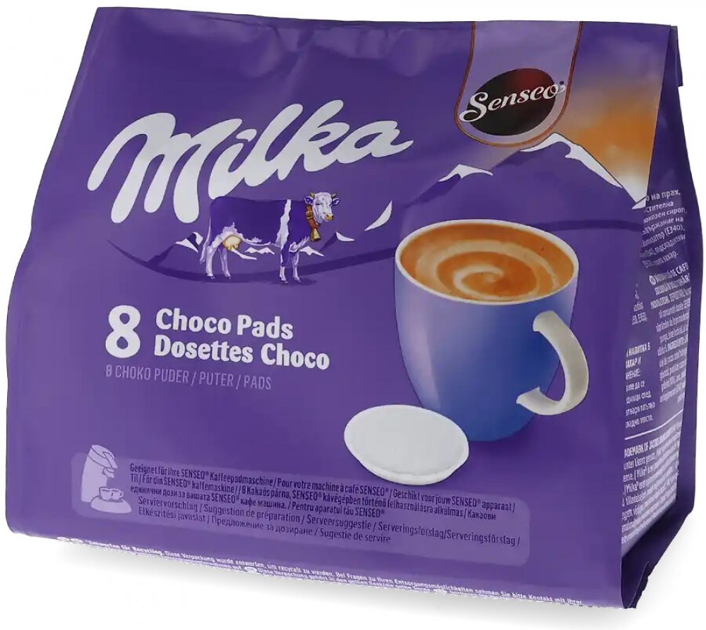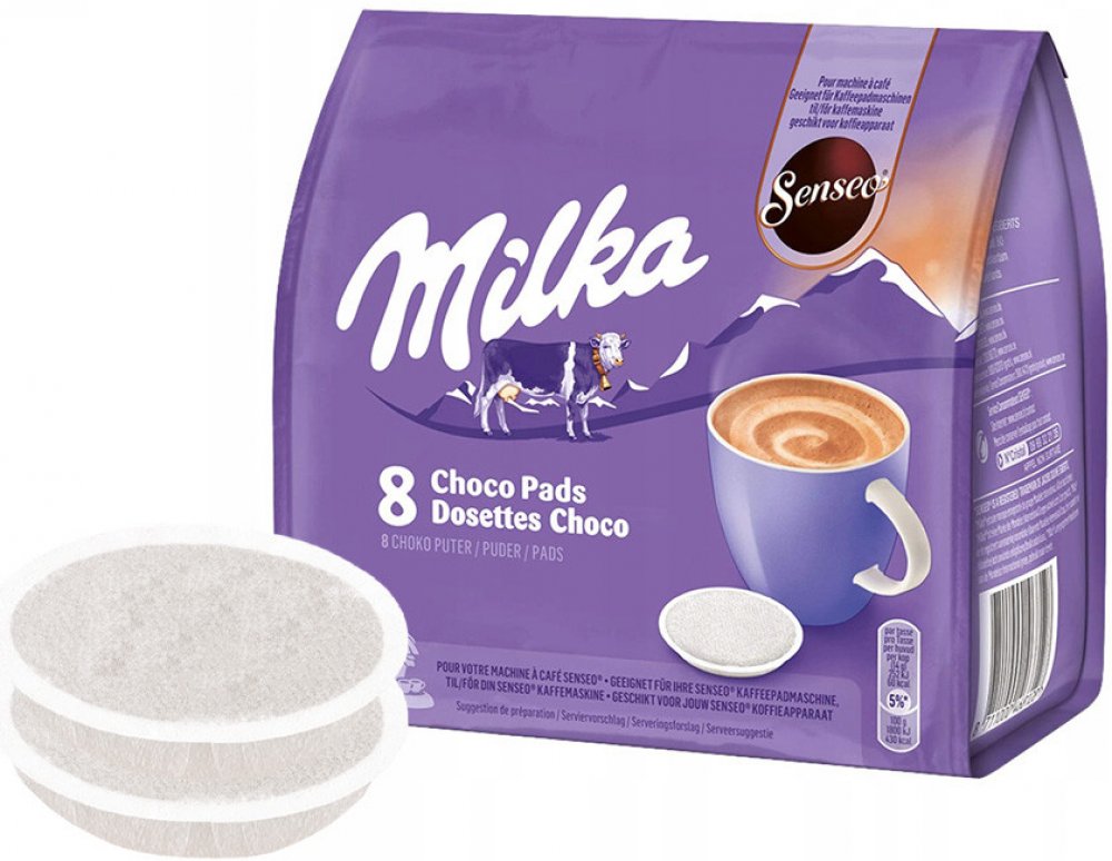Originální kapsle Senseo Douwe Egberts. Složení Senseo Milka Choco je v praktických polštářcích vyrobených z filtračního papíru, které umožňují čerstvě uvařený šálek horké čokolády. Senseo Milka Choco přesvědčuje svými kulatými, jemnými tóny. Je zde také lahodná chuť čokolády a korunka krémové čokoládové pěny.