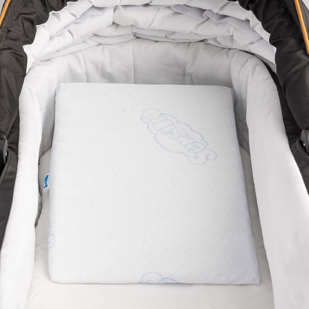 Kojenecký polštář - klín do kočárku Sensillo. Profilovaný tvar zajišťuje správnou polohu páteře. Polštář má potah, který lze sundat a vyprat. Složení povlečení: 100% polyester. Výplň: molitan. Rozměry: šxh cca 30x37 cm, výška v nejvyšším bodě cca 7 cm.