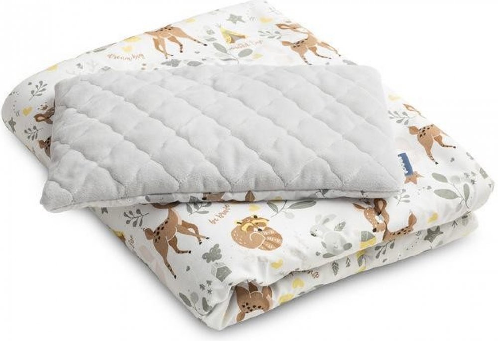 Ložní souprava je kombinací kvalitní bavlny a pěkného a jemného plyše. Souprava se skládá z oboustranného, plochého polštáře a přikrývky s měkkou výplní. Kombinace plyšových látek se bude skvěle hodit do postýlky, gondoly nebo kolébky a poskytne vašemu dítěti pohodlí. Sada je vyplněna antialergickou silikonovou tkaninou. Lze kombinovat s dalšími produkty z naší kolekce.Způsob údržby: Ruční praní. Maximální teplota praní je 30°C.Nepoužívejte bělidla.Perte v jemném pracím prostředku.Nečistěte chemicky.Žehlete pouze vnitřní vrstvu na max. 110°C. Vlastnosti: Vyrobeno z měkkého a jemného plyše a vysoce kvalitní bavlnySet je určen do postýlky, ale vejde se i do korbičkyRozměry polštáře: 35 × 25 cm (+/- 2 cm)Rozměry přikrývky: 95 × 75 cm (+/- 2 cm)Má antialergickou výplň