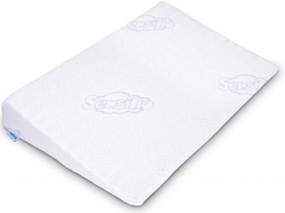 Kojenecký polštář - klín do postýlky Sensillo. Profilovaný tvar zajišťuje správnou polohu páteře miminka. Polštář má potah, který lze sundat a vyprat. Složení povlečení: 100% polyester. Výplň: molitan. Rozměry: šxh cca 59x37 cm, výška v nejvyšším bodě cca 7 cm.