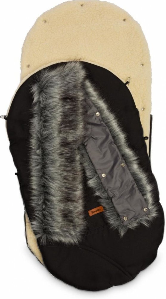 Fusak do kočárku Sensillo ESKIMO BERÁNEK s kožešinou black. Fusak do kočárku ESKIMO Sensillo BERÁNEK s kožešinou, je krásný a luxusní značkový fusak do kočárku, který je nezbytný společník na procházky s mrňouskem v kočárku v chladných dnech na podzim a v zimě. Vhodný zejména jako fusak do kočárku s hlubokou korbou, lze jej však použít i ve sporťáku nebo na sáňky.