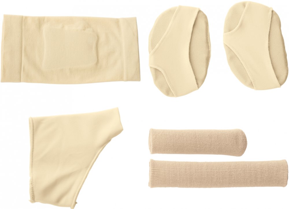 sensiplast ® Ponožka na patu / polštářek pod chodidlo / bandáž na vbočený palec / bandáže na prsty a prsty na noze Vlastnosti Ponožka na patu Gelová výplň – změkčuje tlak obuvi na Achillovu šlachu; patní kost a tzv. Haglundovu patu/exostózu Pratelná (ruční praní) S/M : cca 18 x 9 cm L/Xl : 19 x 9;3cm Polštářek pod chodidlo Gelová výplň – změkčuje tlak a bolest u kuřích ok na přední části chodidla Snižuje tlak obuvi na hlavice metatarzálních kostí Tlumí tlak u příčné ploché nohy Pratelné v pračce na 30 °C Včetně ochranného sáčku na praní S/M : 6 x 9,5 cm L/Xl : 6,5 x 10;5cm Bandáž na vbočený palec (hallux valgus) Gelová výplň – změkčuje tlak obuvi na bolestivé palce Tlumí tlak u hallux valgus (vbočený palec) Snižuje tlak obuvi u kostní výrůstku na základním kloubu palce Vhodná pro levou i pravou nohu Pratelná v pračce na 30 °C Včetně ochranného sáčku na praní S/M : 8,2 x 8,3 cm L/Xl : 8,5 x 8;6cm Bandáže na prsty a prsty na noze Plná gelová vrstva – zmírňuje tlačení a odírání Flexibilní a individuální přistřižení možné 2 bandáže na prsty rukou a 2 bandáže na prsty nohou Pratelné (ruční praní) Charakteristika produktu ;} Použití: změkčuje tlak a bolest Materiál: plast Obsah balení: ponožka na patu: 1 x ponožka polštářek pod chodidlo: 1 x pár bandáž na vbočený palec (hallux valgus): 1x bandáž bandáže na prsty a prsty na noze: 2 x bandáž na prsty rukou, 2 x bandáž na prsty nohou