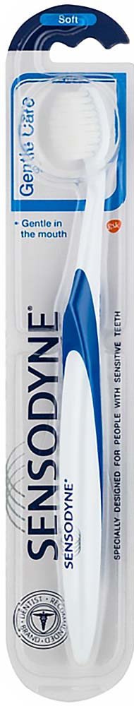 Zubní kartáček Sensodyne Gentle Care Soft byl speciálně vyvinut pro lidi s citlivými zuby. Ultra jemné, zužující se štětiny jsou navrhnuty pro šetrné čištění zubů a dásní. Husté štětiny v dolní části zubního kartáčku účinně odstraňují zubní povlak. Zužující se konce štětin šetrně čistí oblast mezi zuby a podél dásní. Malá hlavička kartáčku je speciálně navrhnutá tak, aby účinně vyčistila i těžko dostupné oblasti v ústech. Protiskluzová rukojeť pro bezpečné uchopení a lepší kontrolu kartáčku při čištění zubů. Doporučuje se měnit kartáček každé 3 měsíce.