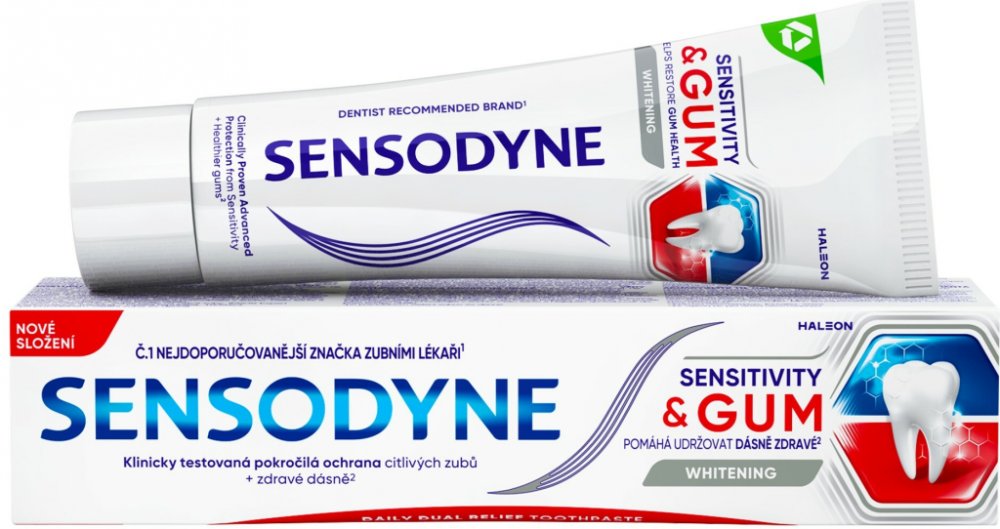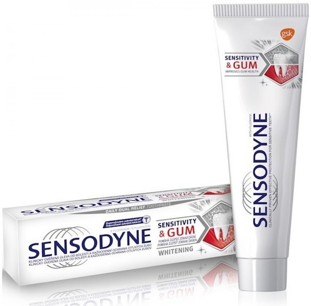 Citlivost zubů se může vyskytnout, pokud se obnažený dentin dostane do kontaktu se studeným, horkým, sladkým či kyselým jídlem nebo nápoji. Problémy s dásněmi jsou pak způsobeny usazováním bakterií v plaku. Díky zubní pastě Sensodyne Sensitivity & GUM Whitening můžete řešit oba problémy najednou.