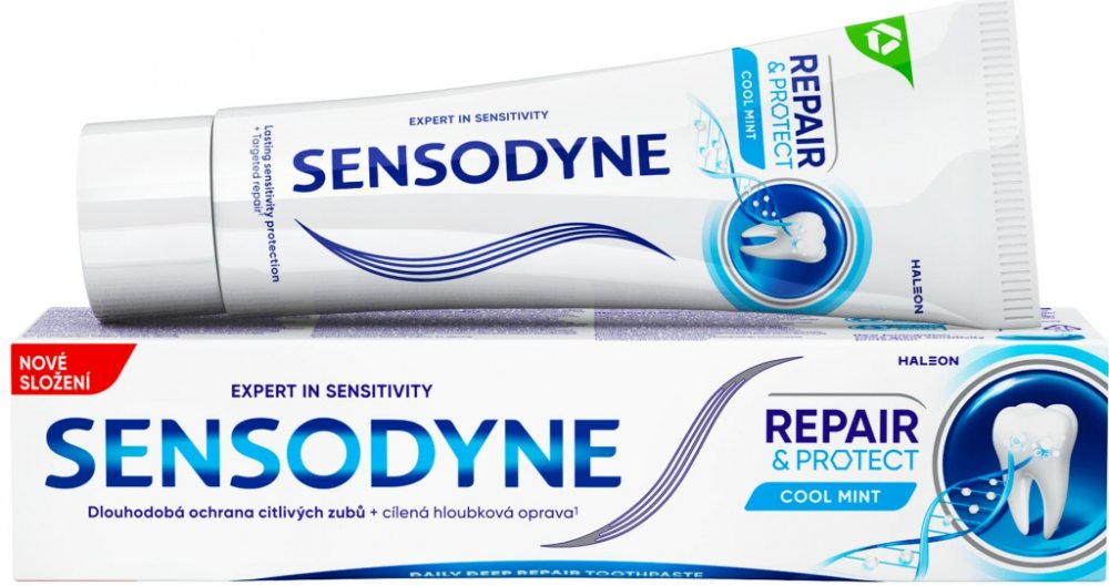 Sensodyne 75 ml Haleon 1000 - 1500 ppm F (vysoký) mátové fluorid, křemík / hydratovaný křemičitan hydratovaný křemičitan (silika) tuba