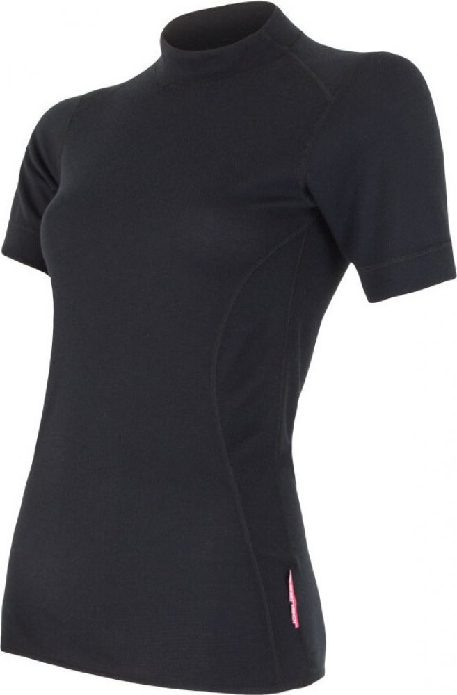 černá Sensor s krátkým rukávem na zimní sporty slim fit s rolákem 100% polyester jednobarevná