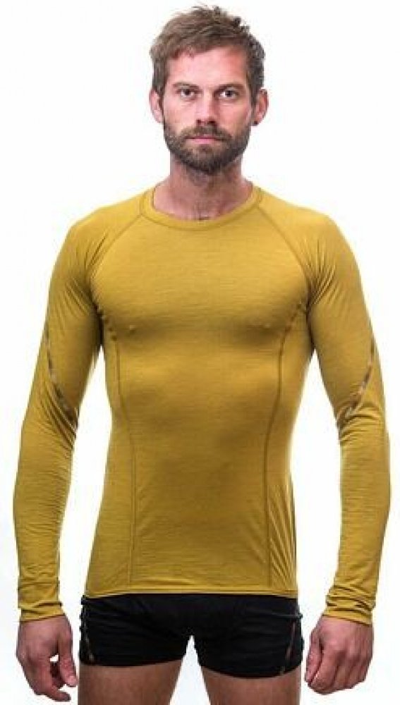 Sensor žlutá s dlouhým rukávem běžecká slim fit 90% merino vlna 10% polyamid