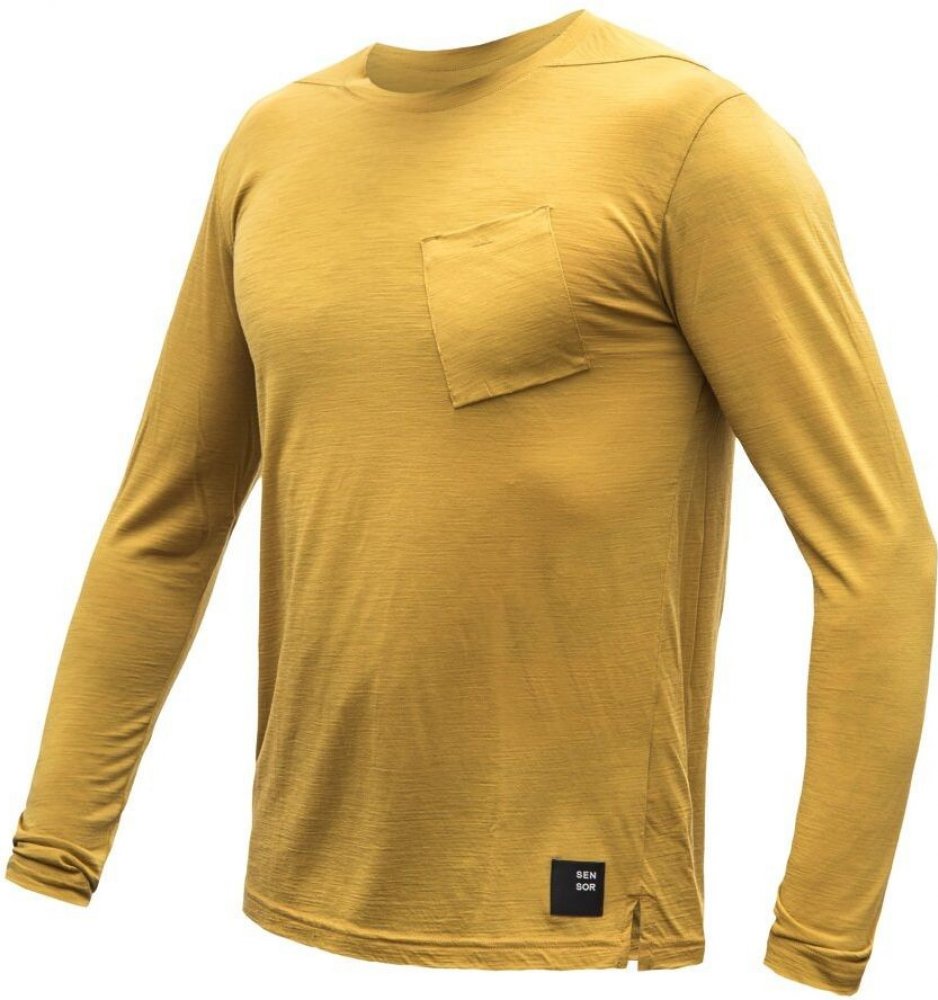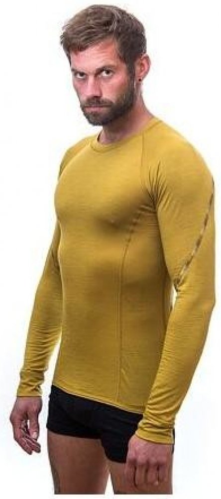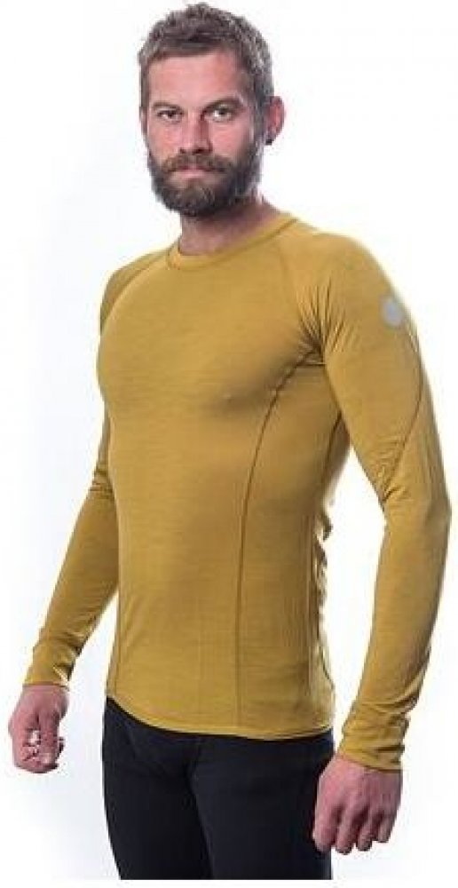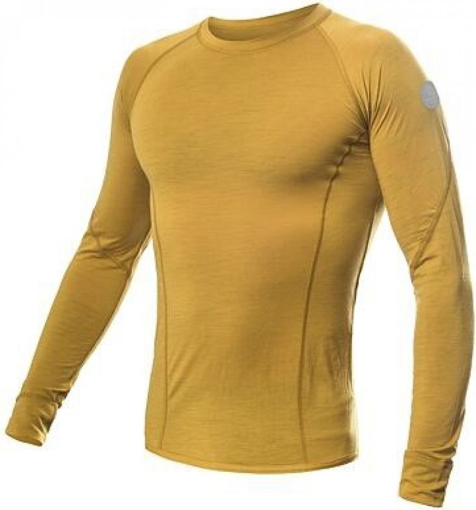 Sensor žlutá s dlouhým rukávem běžecká slim fit 90 % merino vlna 10% polyesterové hedvábí