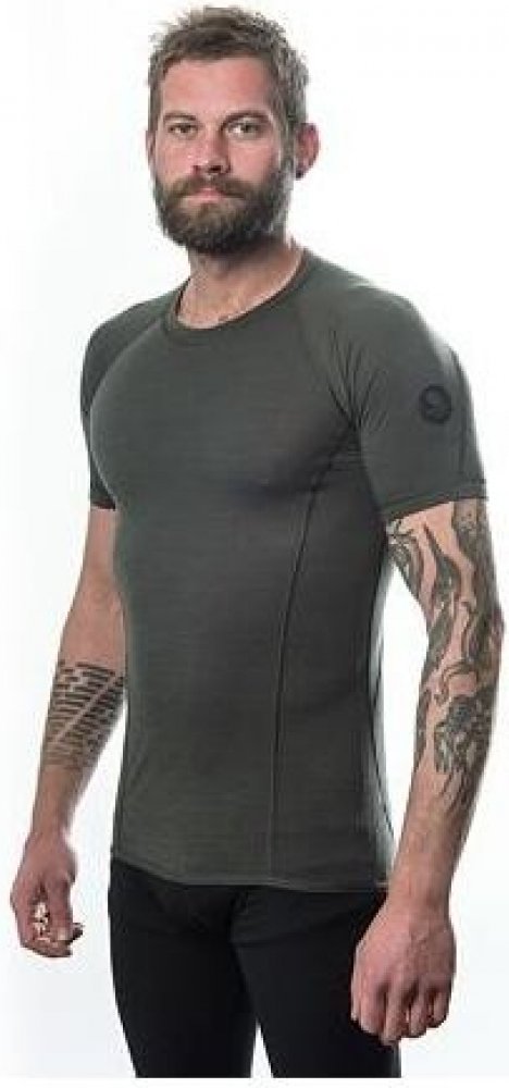 Sensor zelená s krátkým rukávem běžecká slim fit 90% merino vlna 10% polyamid