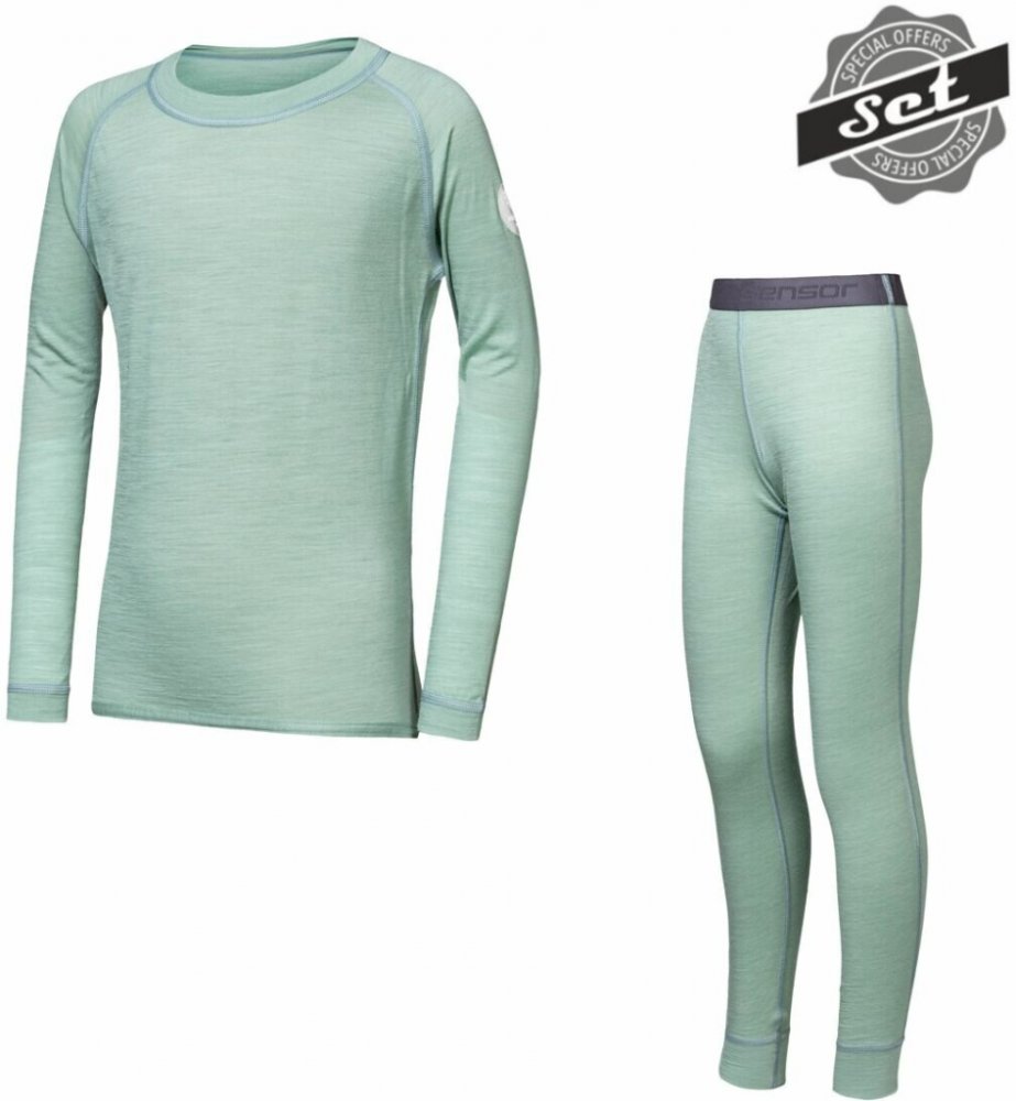 Sensor Merino Air Set dětský triko dl.rukáv + spodky basil green