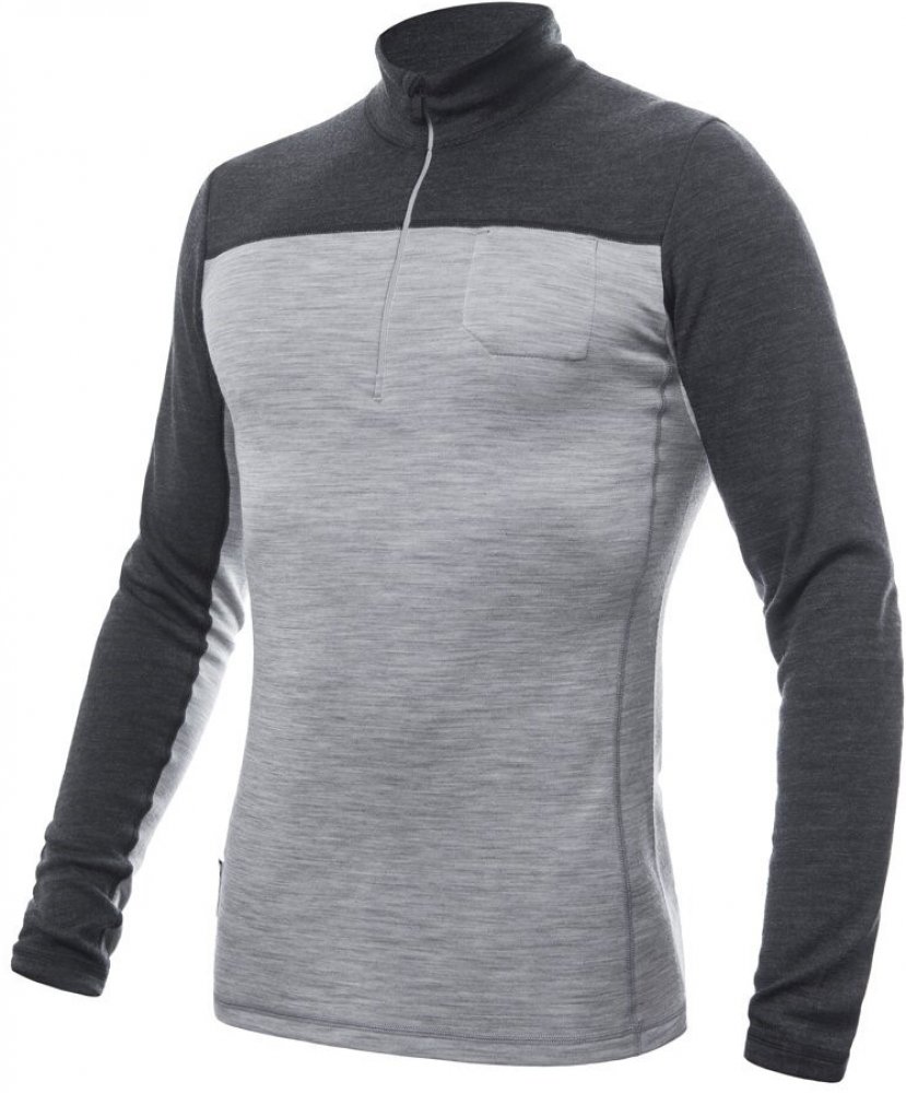 Sensor šedá s dlouhým rukávem na lyže / snowboard regular fit 100% merino vlna s rolákem