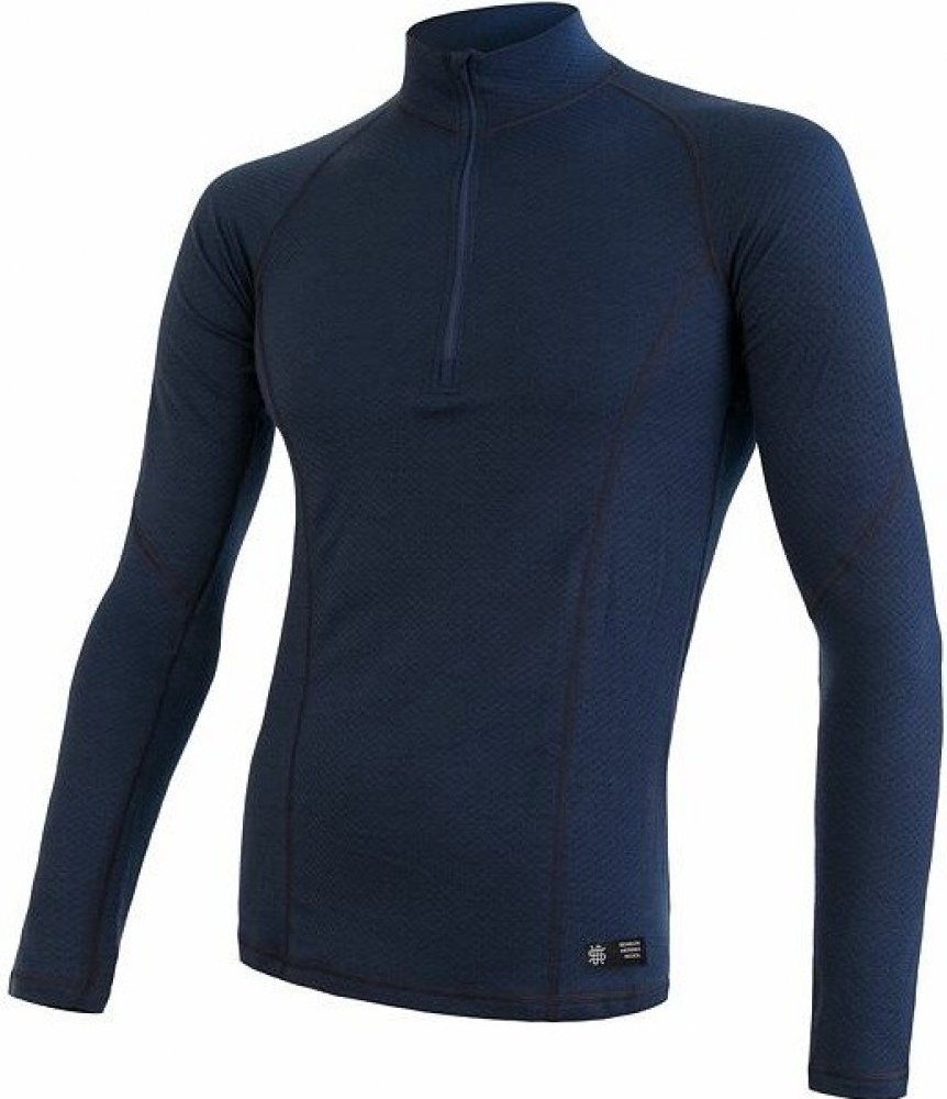 Sensor Merino Double Face pánské tričko dlouhý rukáv zip deep blue
