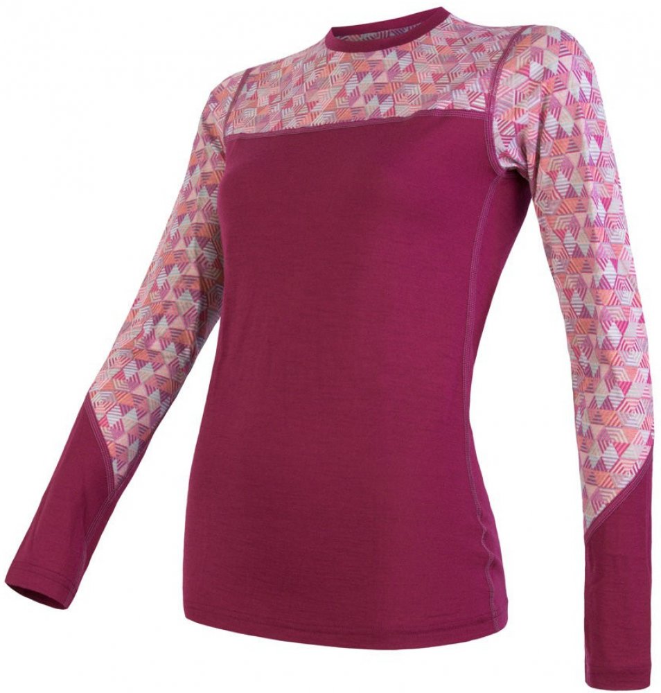SENSOR Merino Impress Dámské funkční triko dl.rukáv lilla/pattern