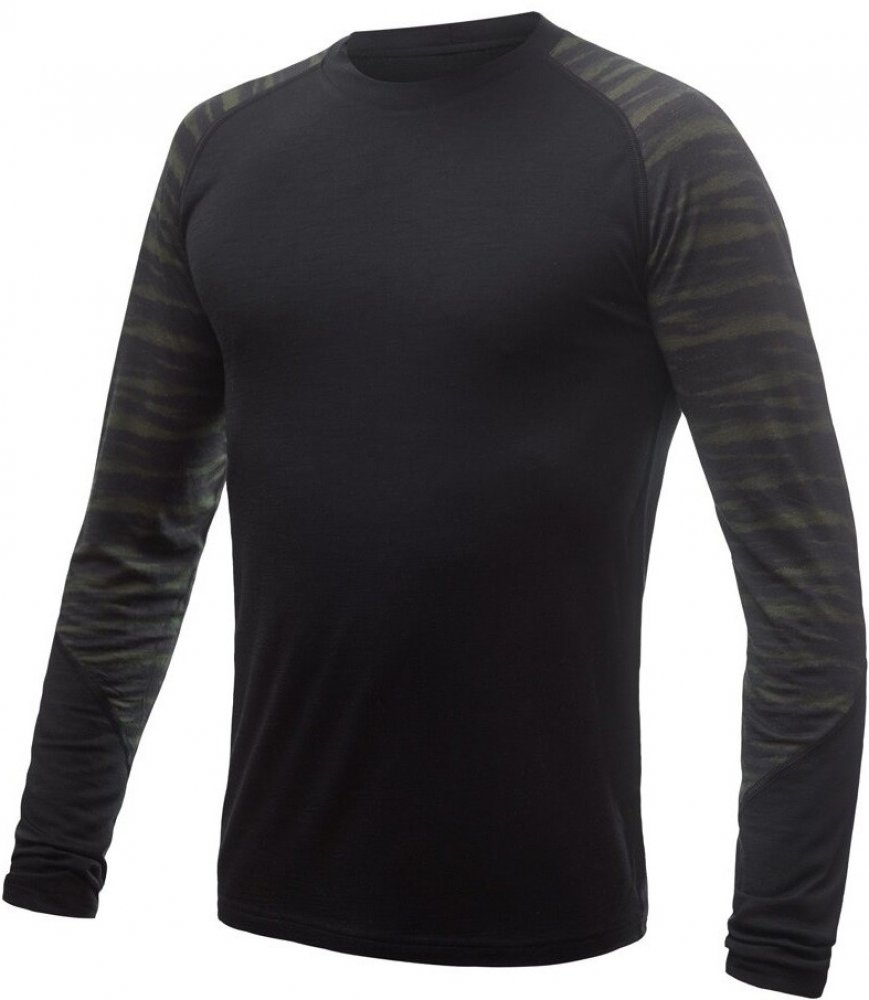Sensor Merino Impress pánské tričko s dlouhým rukávem černá/batik