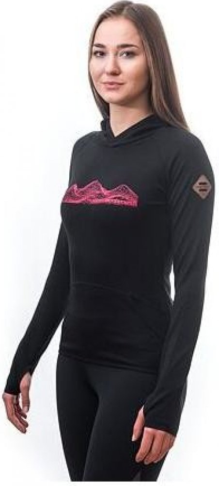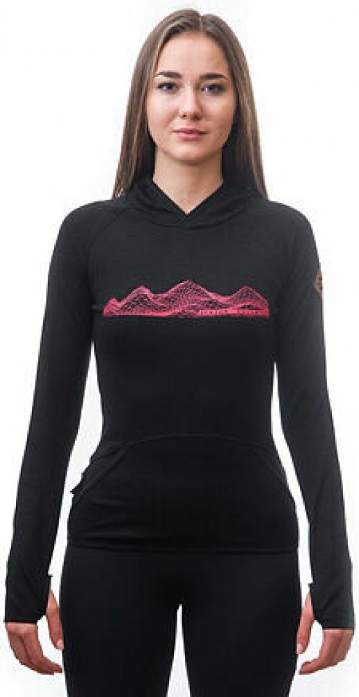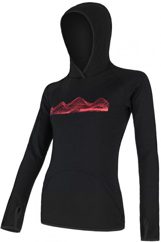Sensor 56% merino vlna 38% polypropylen 6% polyamid 1000 g s kapucí černá jarní/podzimní s dlouhým rukávem s rolákem sportovní regular fit turistické