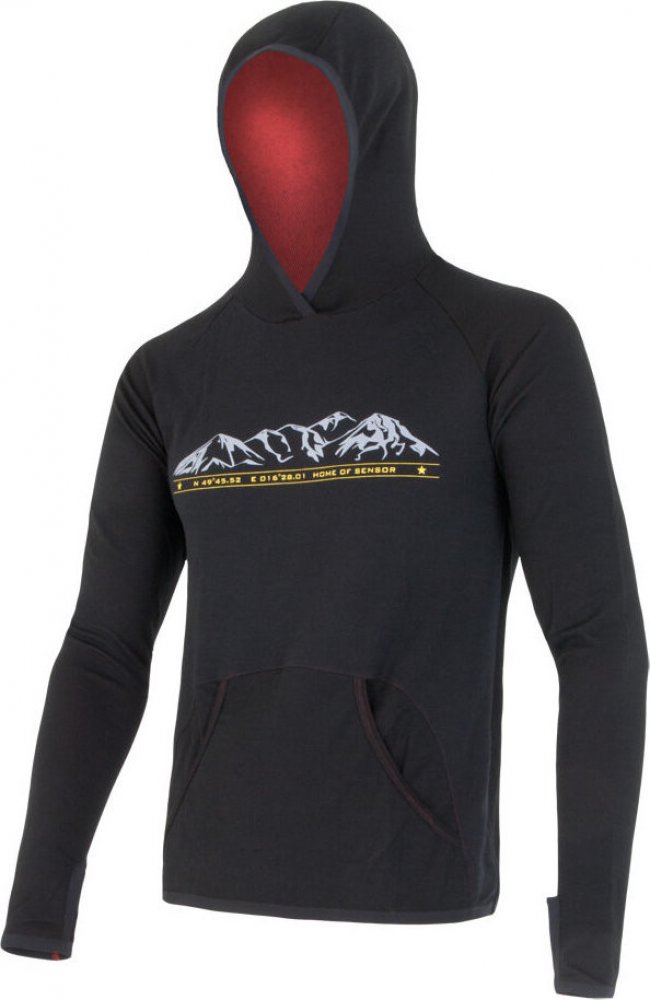 Sensor 5 6% merino 38 % polypropylen 6 % polyamid s kapucí na snowboard / lyže černá s dlouhým rukávem s rolákem sportovní