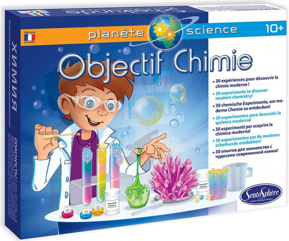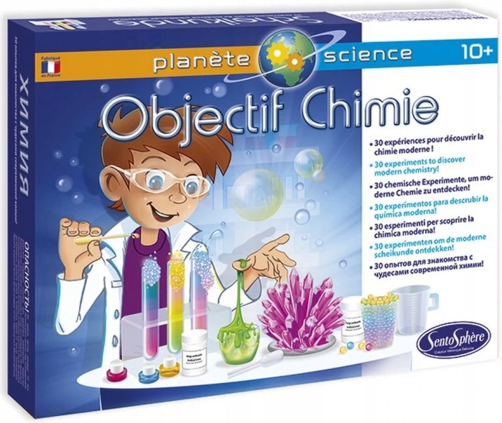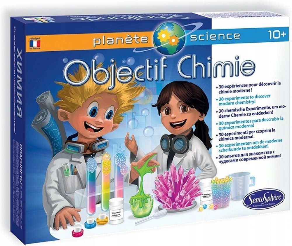 Vzdělávací sada "Chemická laboratoř" vám umožní vyrábět gely, krystaly, vodí perly, umělý sníh, nebo bubliny, ale také objevovat šumivost a chromatograii. Všechny experimenty budete provádět pomocí netoxických produktů a manipulace s nimi bude probíhat za studena.