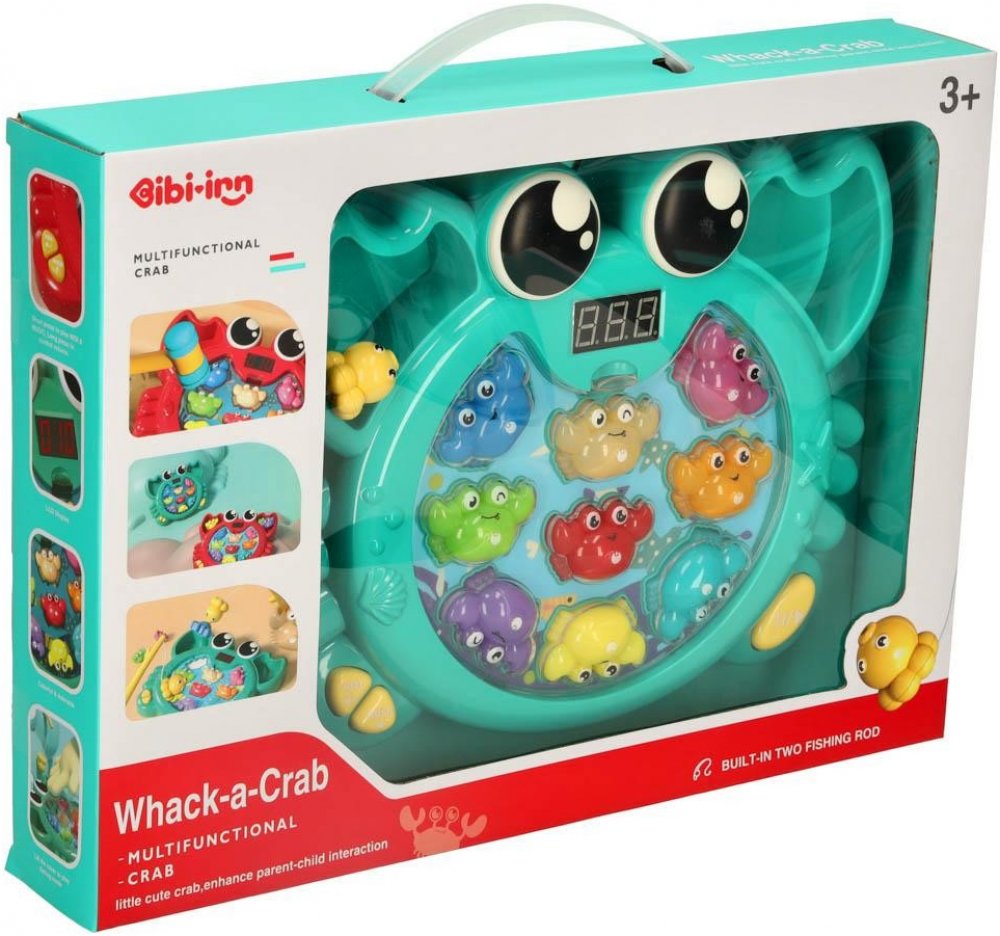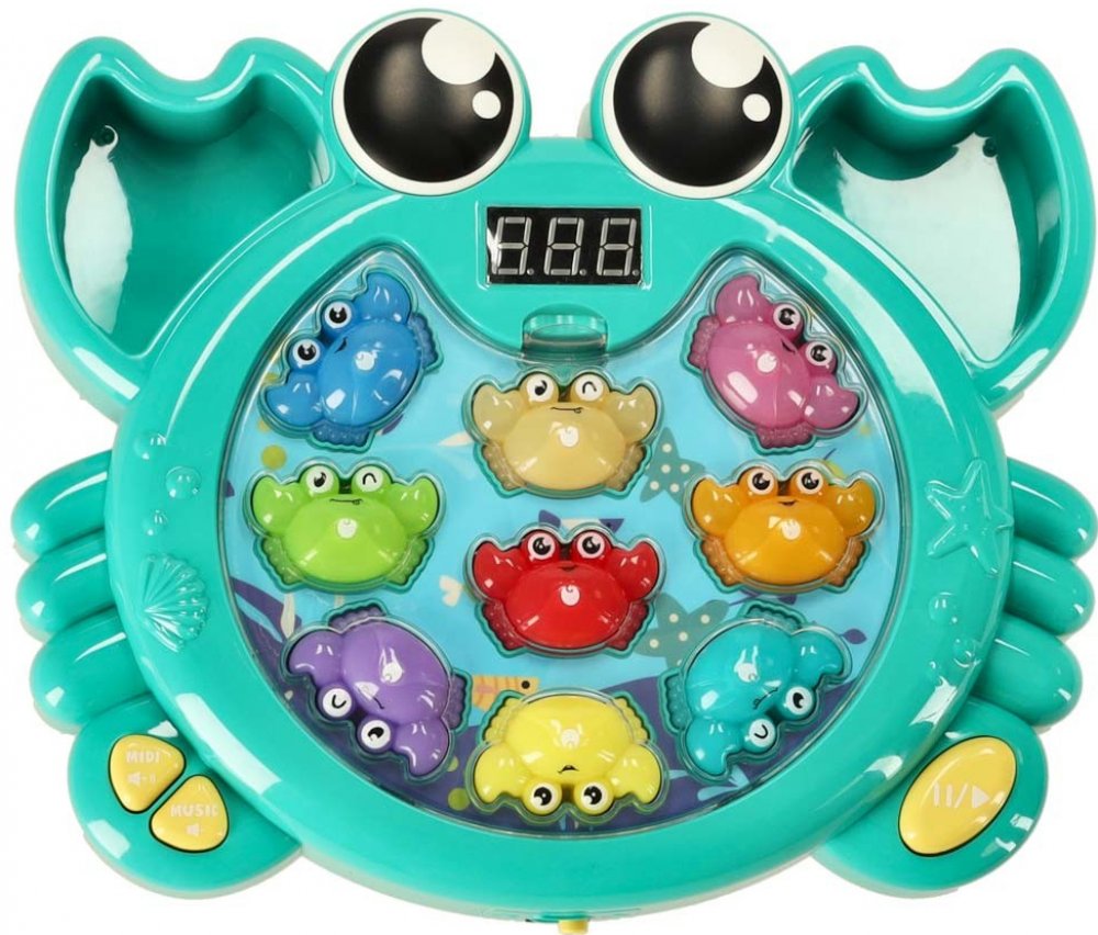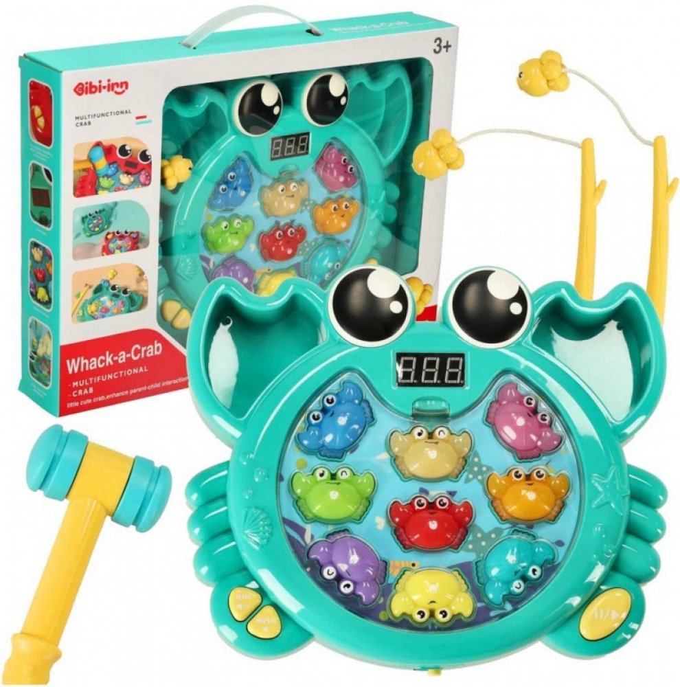 Na výběr jsou dvě hry: zatloukání krabů kladívkem a jejich chytání rybářským prutem. Obě aktivity podporují rozvoj manuálních dovedností, jemné motoriky a koordinace ruka-oko, které jsou v prvních letech života batolete klíčové. Prostřednictvím těchto činností si dítě procvičuje přesné pohyby a zdokonaluje své dovednosti.