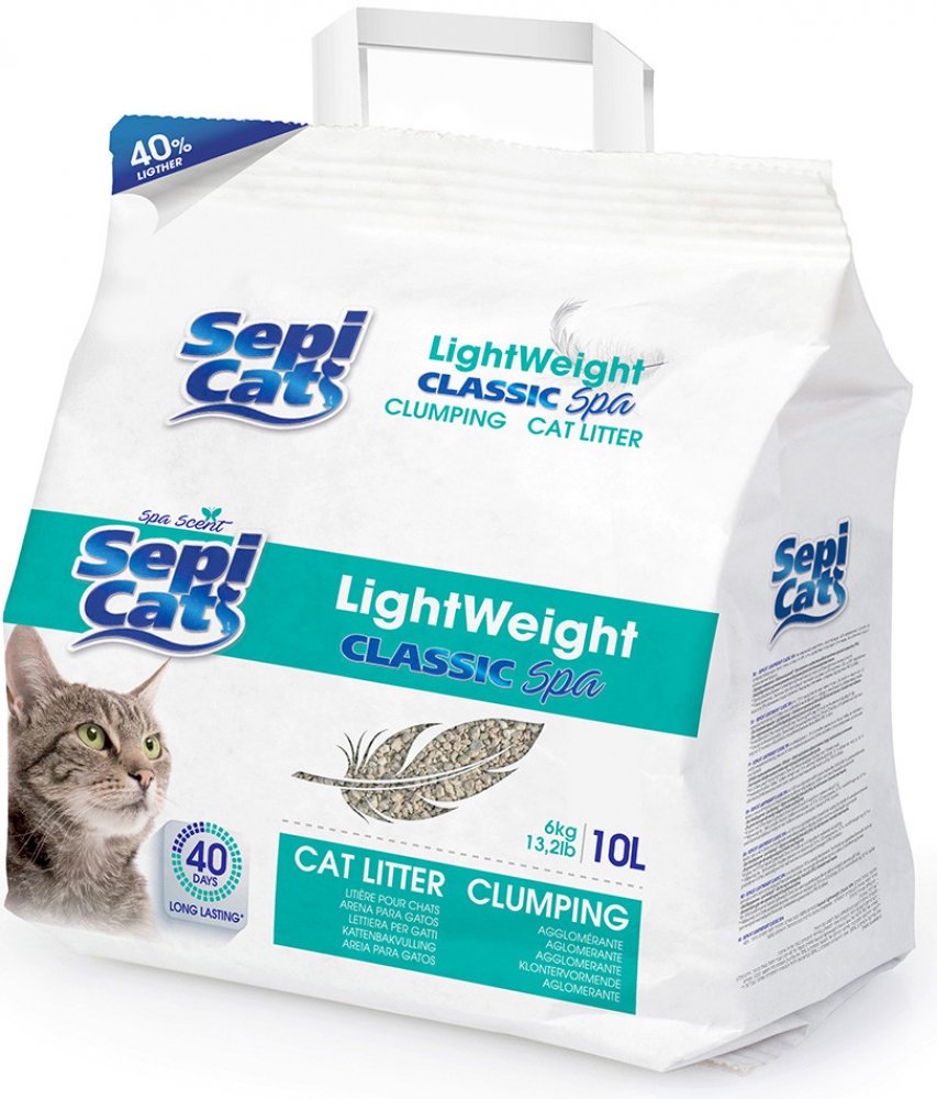S ekologickým stelivem Sepicat LightWeight Classic Spa se kočičí toaleta stane skutečnou oázou odpočinku! Jeho příjemná vůně "Spa"eliminuje nepříjemné pachy. Toto stelivo rychle vytváří kompaktní hrudky, které snadno odstraníte standardní lopatkou na stelivo. Poté stačí přidat trochu čerstvého steliva. Stelivo Sepicat LightWeight Extreme Fresh je vyrobeno z přírodních hliněných granulí a má o 40 až 50 % lepší uhlíkovou stopu než tradiční stelivo. Je také vysoce absorpční a má nízký obsah prachu , takže nedráždí dýchací cesty koček a jejich majitelů. Vlastnosti steliva pro kočky Sepicat Lightweight Classic Spa hrudkující stelivo pro kočky vůně "Spa": při kontaktu s močí uvolňuje příjemnou svěží vůni eliminuje nepříjemný zápach: účinný až 40 dní vysoce absorpční: rychle vytváří kompaktní chuchvalce, se snadno odstraňuje pomocí lopatky na stelivo velmi lehké: váží o 40-50 % méně než tradiční stelivo šetrné k životnímu prostředí: nižší uhlíková stopa než u tradičních steliv velké granule: nelepí se na tlapky vašeho zvířete nízký obsah prachu