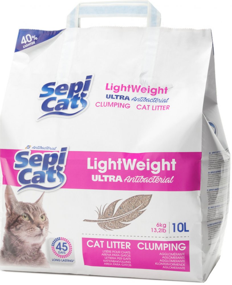 Kočky kladou velký důraz na čistotu, a proto je nezbytné jim poskytnout kvalitní stelivo, jako je Sepicat LightWeight Ultra Antibacterial. Jeho jemné antibakteriální granule jsou vysoce absorpční, pohlcují tekutiny a zároveň zabraňují množení bakterií. Zabraňují tvorbě nepříjemných pachů a vydávají pro dítě příjemnou vůni mastku. Přírodní jíl také rychle vytváří kompaktní hrudky, které můžete snadno odstranit lopatkou na stelivo. Stačí jen doplnit nové stelivo. Stelivo Sepicat LightWeight Ultra Antibacterial je také velmi lehké a snadno se s ním manipuluje. vlastnosti steliva Sepicat LightWeight Ultra Antibacterial pro kočky hygienické stelivo pro kočky antibakteriální: zabraňuje šíření bakterií a omezuje nepříjemný zápach kompaktní hrudky: snadno se odstraňují pomocí lopatky na stelivo vysoce absorpční granule: účinně pohlcují tekutiny vysoká účinnost: kontrola zápachu a dlouhotrvající svěžest příjemná vůně: dětský pudr lehčí než bentonitové stelivo: snadná manipulace přírodní materiál: jíl, známý jako hormonit šetrné k životnímu prostředí: nízká uhlíková stopa velmi úsporné: účinnost až 45 dní Vlastnosti steliva pro kočky Sepicat Lightweight Classic Spa hrudkující stelivo pro kočky vůně "Spa": při kontaktu s močí uvolňuje příjemnou svěží vůni eliminuje nepříjemný zápach: účinný až 40 dní vysoce absorpční: rychle vytváří kompaktní chuchvalce, se snadno odstraňuje pomocí lopatky na stelivo velmi lehké: váží o 40-50 % méně než tradiční stelivo šetrné k životnímu prostředí: nižší uhlíková stopa než u tradičních steliv velké granule: nelepí se na tlapky vašeho zvířete nízký obsah prachu Sepicat LightWeight Extreme Fresh na první pohled:: Vhodné pro kočky: obzvláště lehké stelivo do kočičího boxu Neutralizuje nepříjemné pachy: voní svěže jako dětský pudr Dlouhodobé udržení zápachu: až 45 dní Extra savé : rychle tvoří hrudky, snadno se odstraňují běžnou lopatkou na kočičí stelivo o 40-50 % nižší hmotnost : ve srovnání s běžným stelivem pro kočky Šetrné k životnímu prostředí: nízká uhlíková stopa, výroba šetrná ke zdrojům Čisté prostředí: nevytváří prach Využijte naší skvělé nabídky! Pouze po omezenou dobu: nyní při koupi 2 balení steliva Sepicat získáte dalších 10 % slevu. Neopomeňte prosím, že se uvedená nabídka vztahuje pouze na produkt č. 2149356.