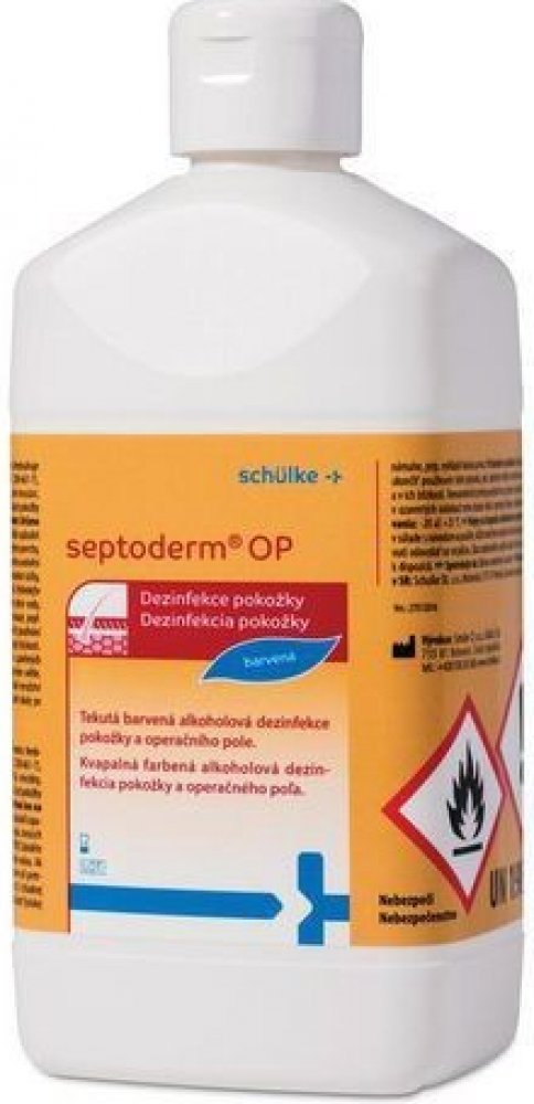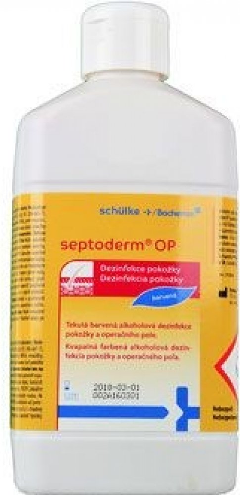 Operační pole se důkladně potře tamponem namočeným v Septodermu OP, přípravek se nechá působit do zaschnutí,zvláště před prací s termoelektrickými přístroji.