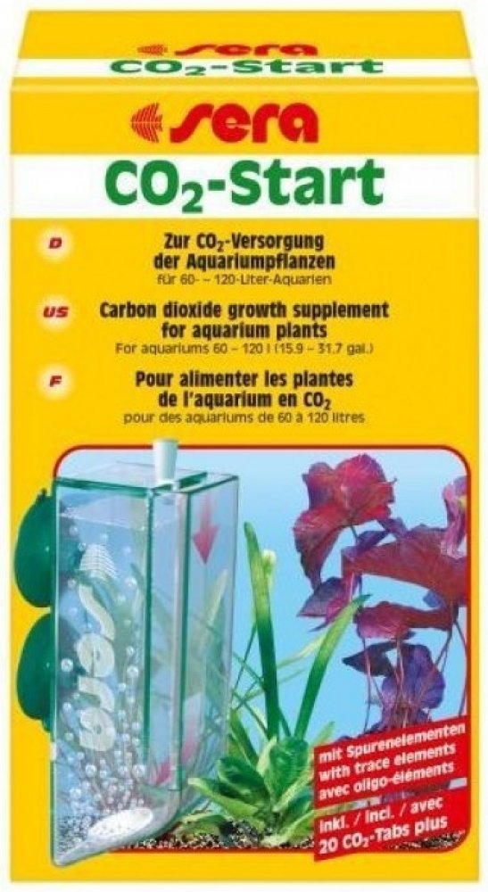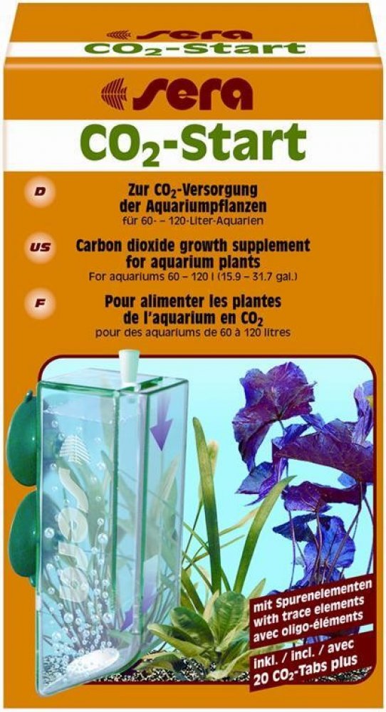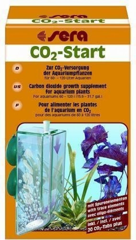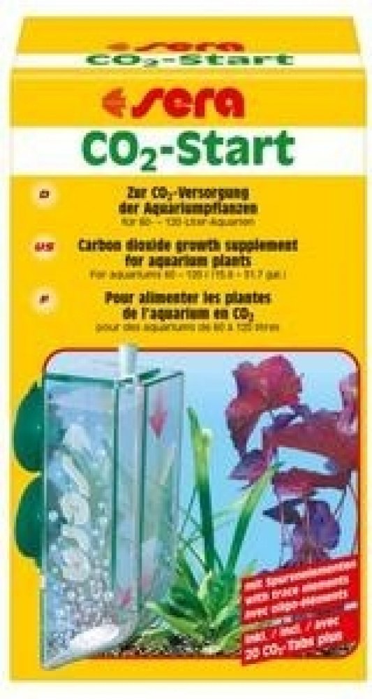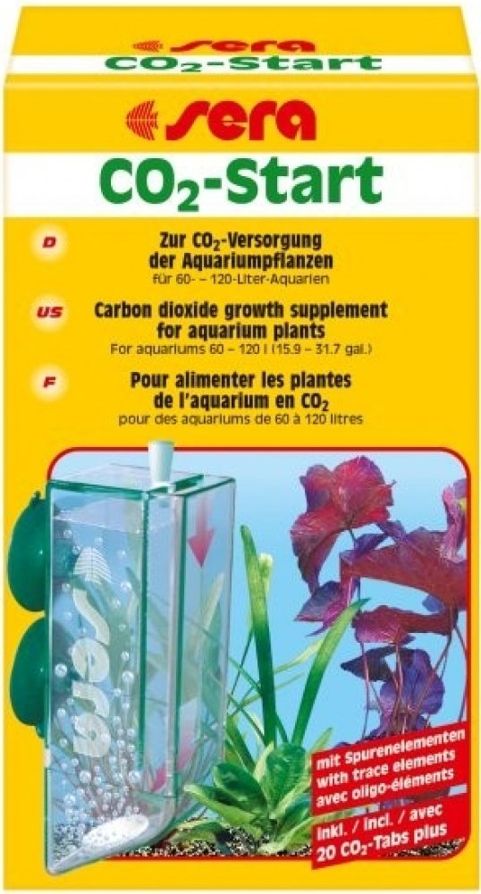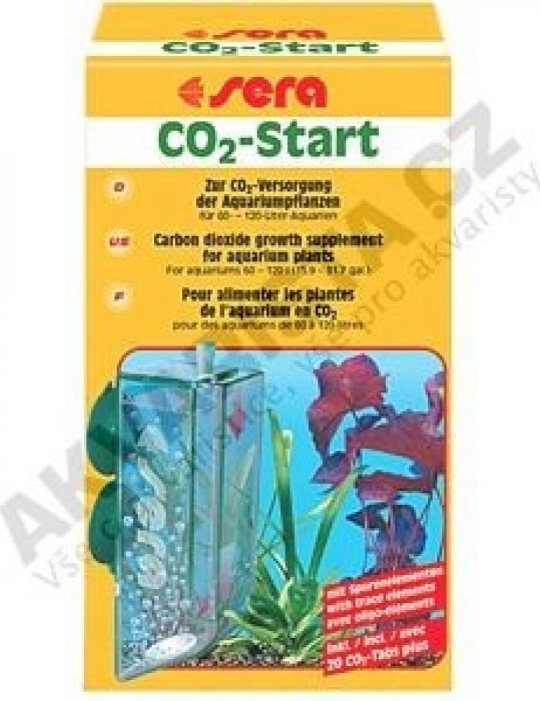 Sera CO2 start je levnýmý způsobem hnojení oxidem uhličitým. Ideální pro malá akvária do 120 litrů. sera CO2-Start se skládá ze sera CO2 difúzního reaktoru a tabletek sera CO2 Tabs plus.