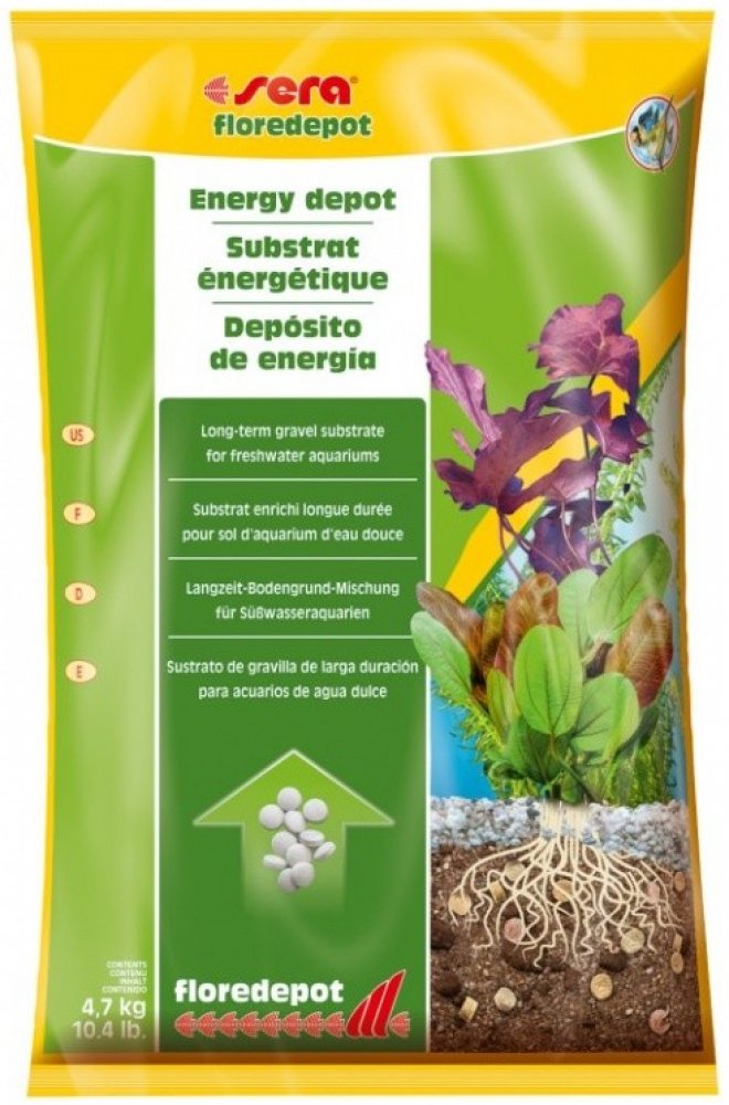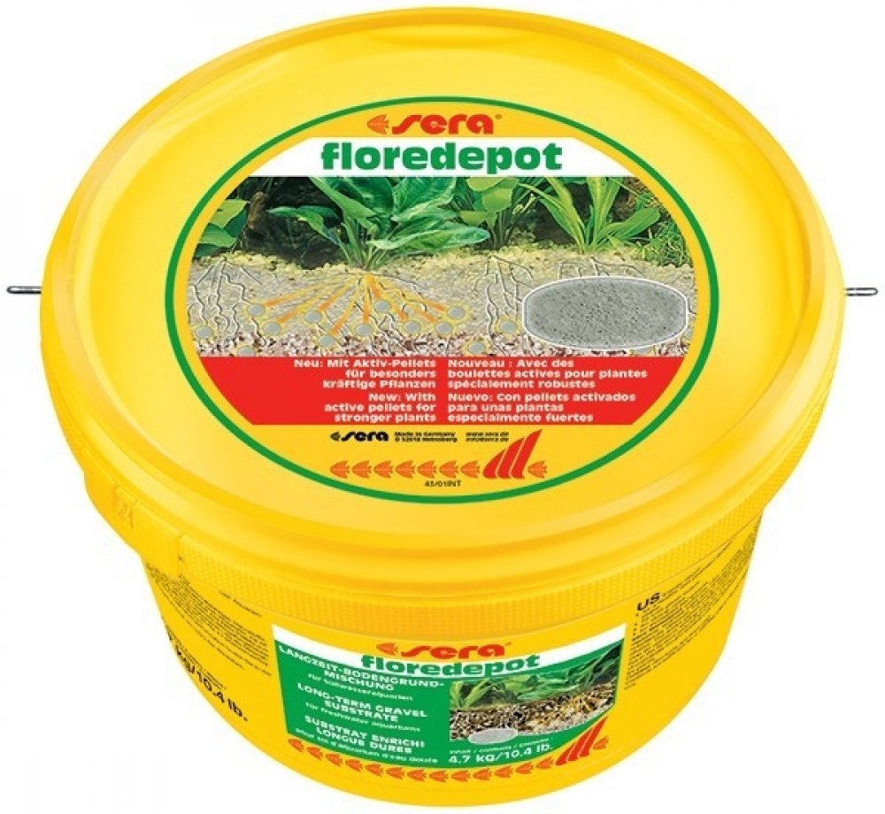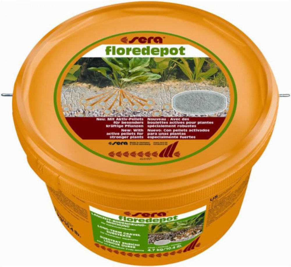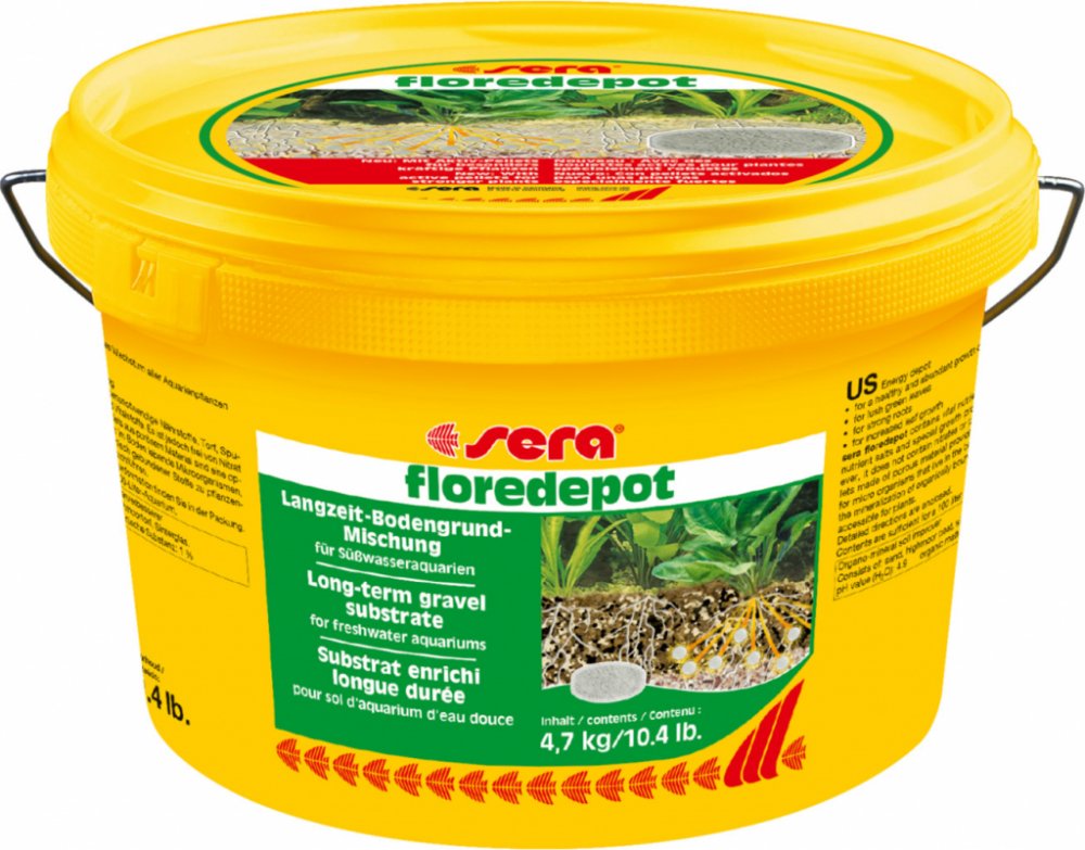 Sera Floredepot je výživný substrát s růstovým posilovačem pro rostliny při zakládání sladkovodních akvárií. Tato vyvážená směs písku, rašeliny, důležitých živin a stopových prvků umožní rostlinám se rychle ujmout. Substrát se používá především při zakládání akvária a umísťuje se pod aktuální materiál dna (štěrk, písek). Rostliny jsou v první fázi (4-6 týdnů) zásobovány živinami. Tvorba silných kořenů je podpořena speciální strukturou materiálu dna. Neobsahuje ani nitráty ani fosfáty.