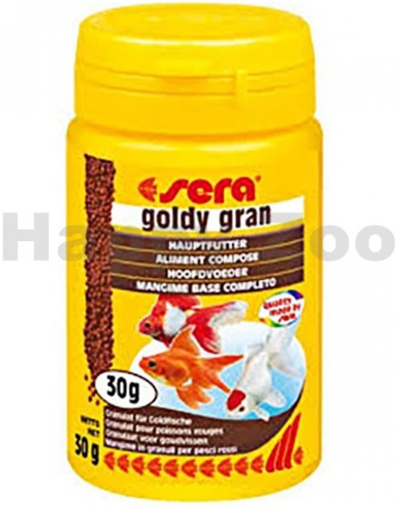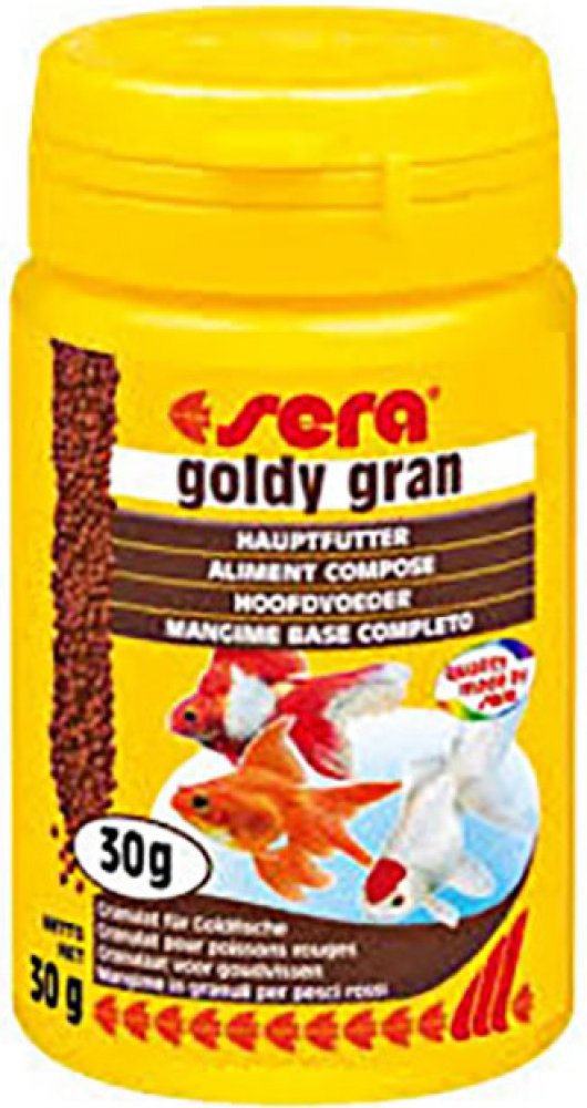 Sera Goldy Gran je základní krmivo pro všechny studenovodní zlaté ryby. Podporuje krásné barvy, zdravý růst, silný imunitní systém, plodnost a vitalitu. Krmivo je výživné, obzvlášť snadno stravitelné. Optimálně splňuje speciální potřeby těchto náročných chovných forem zlatých rybek. Díky šetrnému způsobu zpracování zůstávají obsaženy všechny hodnotné látky VIP formule a také vybraných surovin, jako omega mastných kyselin, betaglukany, astaxantin, esenciální aminokyseliny, vitaminy, minerální látky a stopové prvky. Výsledkem jsou krásné barvy, zdravý růst, silný imunitní systém, plodnost a vitalita ryb. Obsahuje řasu spirulina. Bez barviv a konzervačních látek. Pro obzvláště krásné vybarvení doporučujeme příležitostně doplnit krmivem Sera goldy color spirulina.