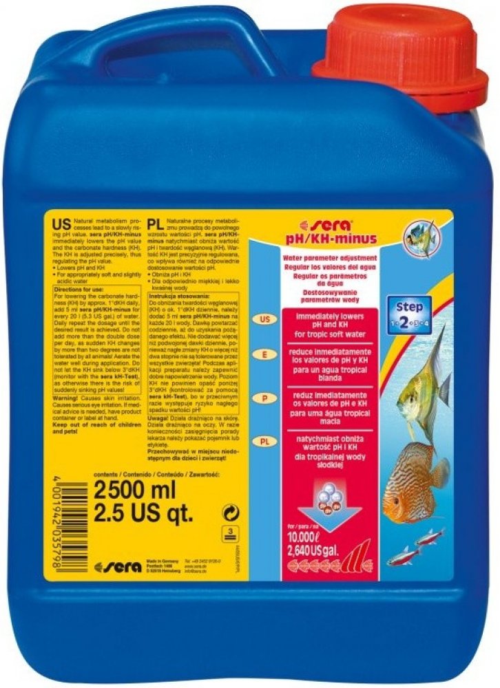 Tento přípravek okamžitě sníží hodnotu pH jako i karbonátovou tvrdost vody (KH).