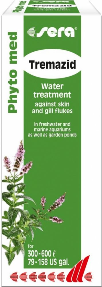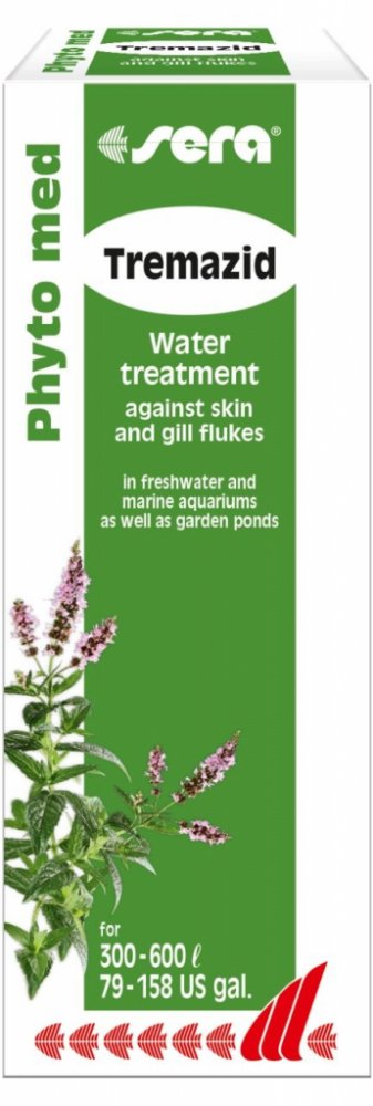 Návod na použití: Přidat přiloženou stříkačkou 1 ml Tremazid na 20 litrů vody. Prostředek rozprostřít po hladině a současně lžicí či tyčkou promíchat do nádrže. Jsou-li ryby napadeny žaberními červy, musí být po 7 dnech provedena druhá aplikace. Během aplikace vypnout UV-lampy a zajistit dobré vzduchování nádrže. Biologické filtry lze nechat zapojené. Po ukončení aplikace doporučujeme vodu přefiltrovat skrze sera super carbon.