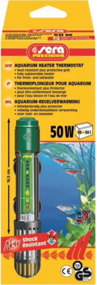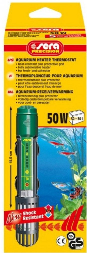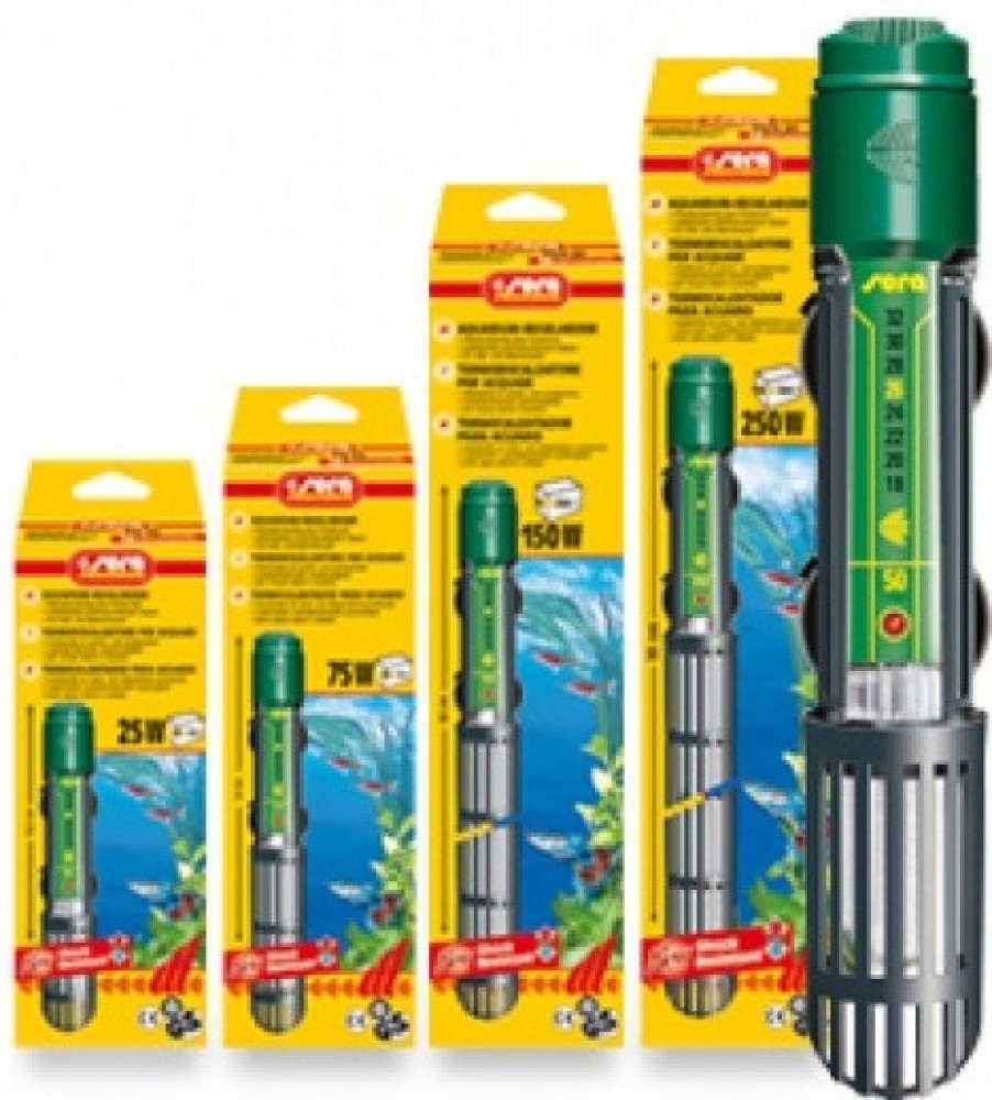 Vysoce kvalitní topítka z nárazu odolného křemenného skla s přesnou ochranou obvodu a ochrannou mřížkou. sera akvarijní topení s termostatem jsou velmi krátká a snadno se instalují do malých akvárií. Indikátor napájení (on/off) je zajištěn malým neonovým světýlkem.