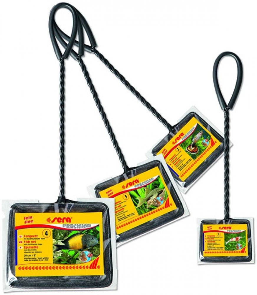 Sera síťky na ryby jsou k dostání ve čtyřech velikostech (3“, 4“, 5“ a 8“).