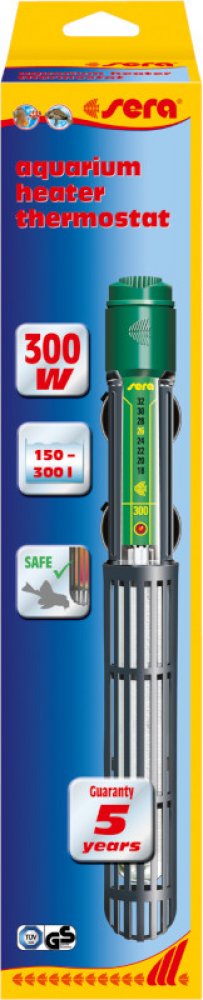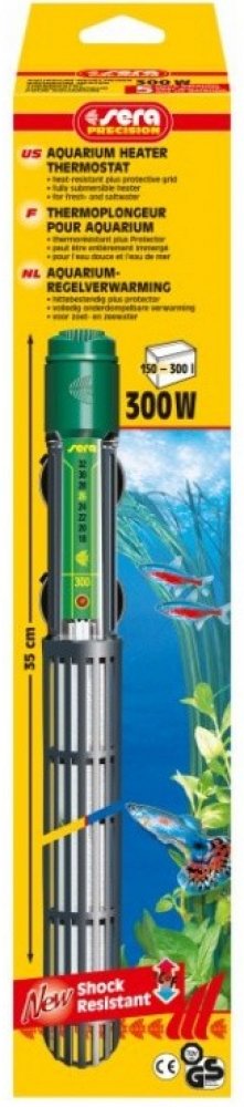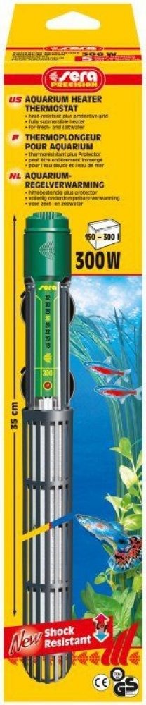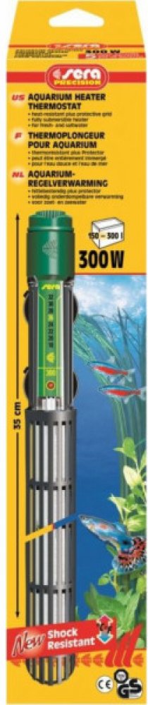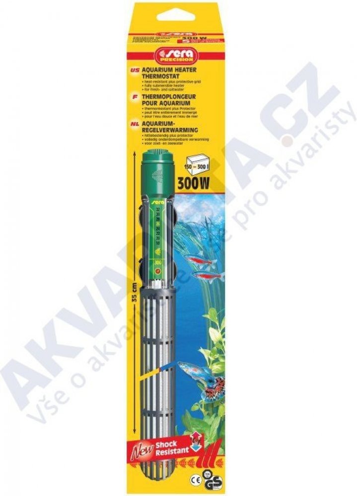 sera topení RH 300 W - Vysoce kvalitní topítka z nárazu odolného křemenného skla s přesnou ochranou obvodu a ochrannou mřížkou. - Sera akvarijní topení s termostatem jsou velmi krátká a snadno se instalují do malých akvárií. Indikátor napájení (on/off) je zajištěn malým neonovým světýlkem. 300 W - délka/výška 35 cm Jak vybrat správné topení: ? T = teplota vody - pokojová teplota velikost akvária 3...