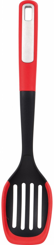 Servírovací lžíce děrovaná Bergner / 34 x 7,2 x 3,9 cm / nylon a silikon / černá a červená