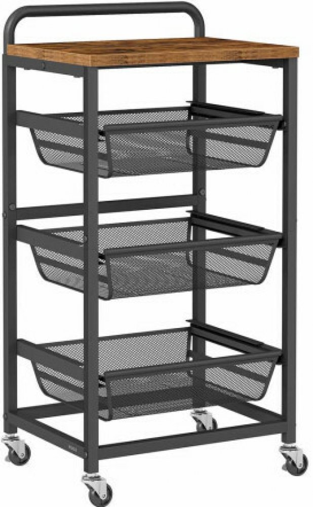 Funkční 4-patrový stolek nabízí snadný přístup k potravinám a kuchyňským doplňkům díky výsuvným košíkům a horní polici. Stabilní kovová konstrukce s kolečky umožňuje snadné přemisťování, přičemž husté síťované koše zajišťují bezpečné skladování i drobných předmětů. Ideální pomocník do každé domácnosti. Parametry produktu: