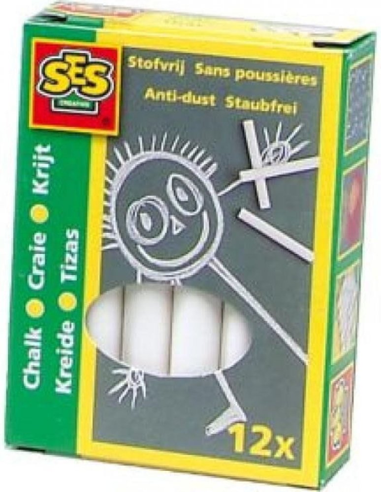 Křídy nešpiní na rukou, nedrolí se, nepráší a jsou vhodné i pro alergické děti. Balení obsahuje 12 kusů bílých kříd. Pomocí kříd mohou děti malovat na tabule, zdi, zem a všude tam, kde uzanjí za vhodné.