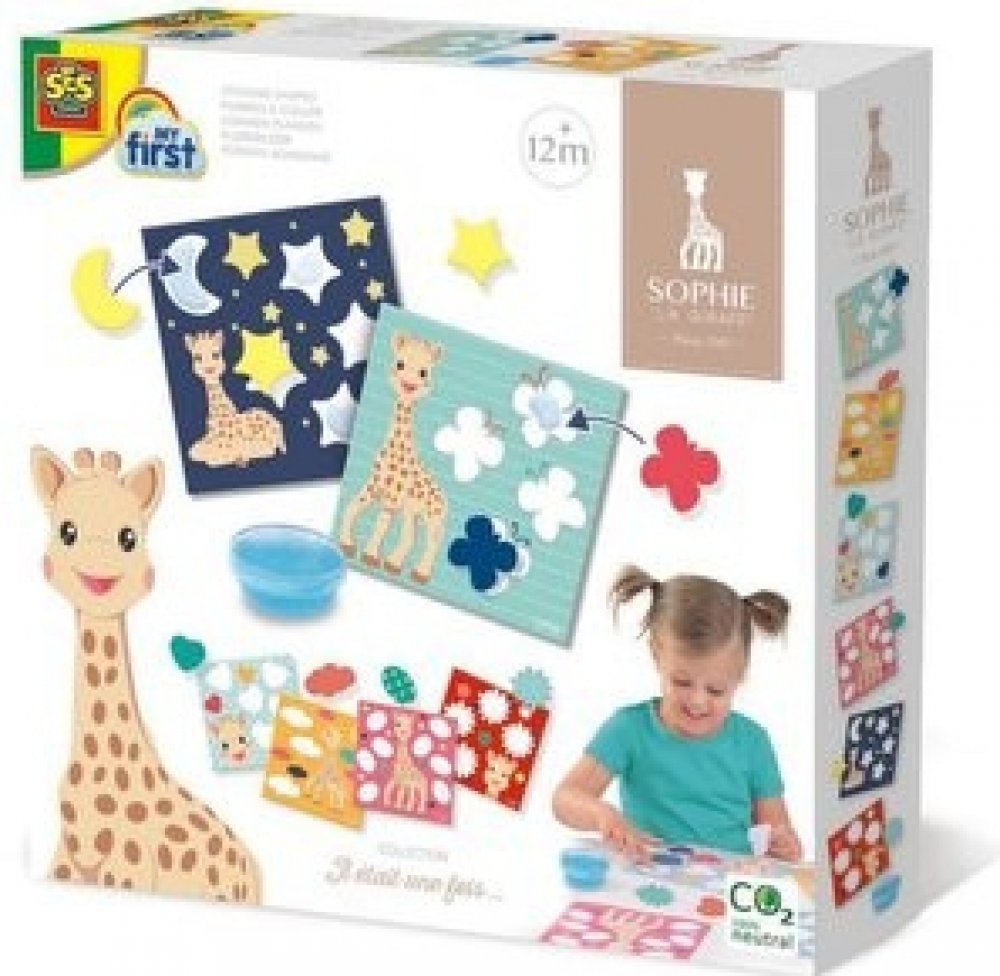 Tato sada SES obsahuje 6 karet s žirafou Sofií, které je třeba vyplnit barevnými tvary. S kouzelným prstovým lepidlem můžete nalepit chybějící tvary na správná místa. Prstové lepidlo má modrou barvu, takže vidíte, kam jste lepidlo nanesli. Jakmile lepidlo zaschne, modrá barva zmizí. Prstové lepidlo je bezpečné a snadno omyvatelné z pokožky a pratelné z většiny textilií.