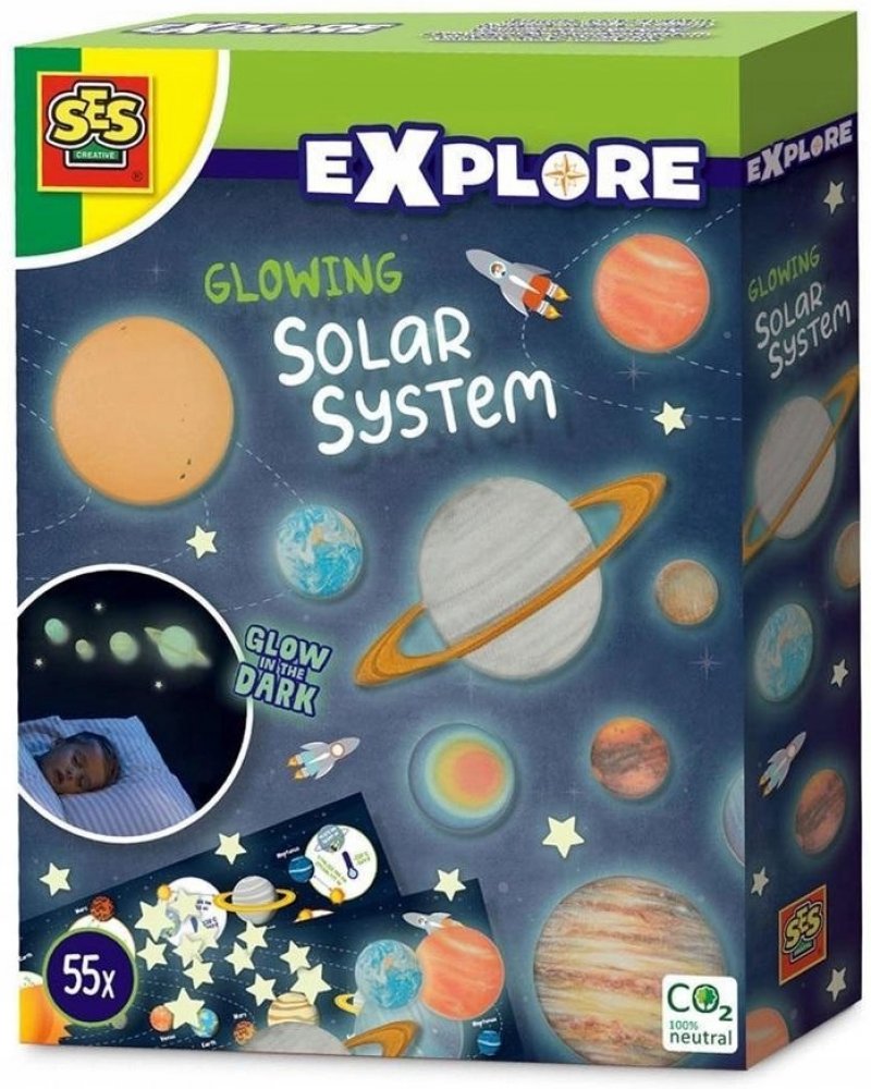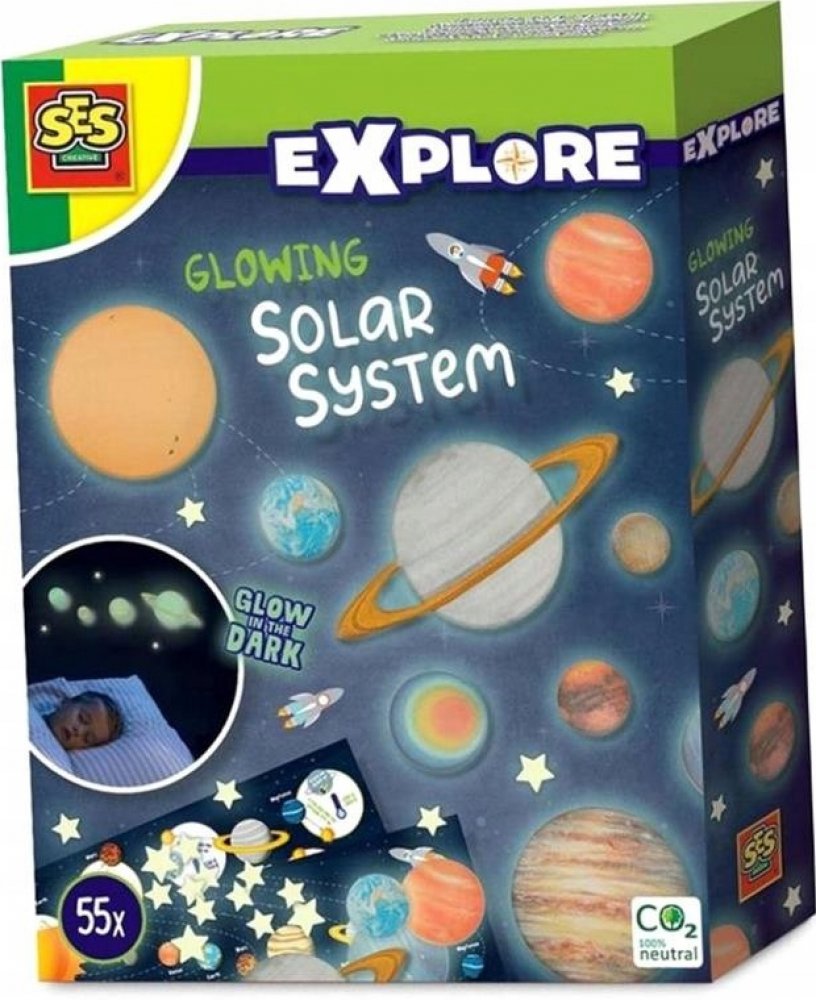 Milujete vesmír? Zajímáte se o hvězdy a planety naší sluneční soustavy? Tato sada je přesně pro vás. Proměňte svou ložnici v krásnou sluneční soustavu. Nejen, že to vypadá opravdu skvěle, je to také velmi naučné. Objevte všechny různé planety! Devět nálepek planet a hvězd lze snadno připevnit na zeď nebo strop. Díky speciálnímu efektu záře ve tmě bude vaše ložnice v noci zářit!