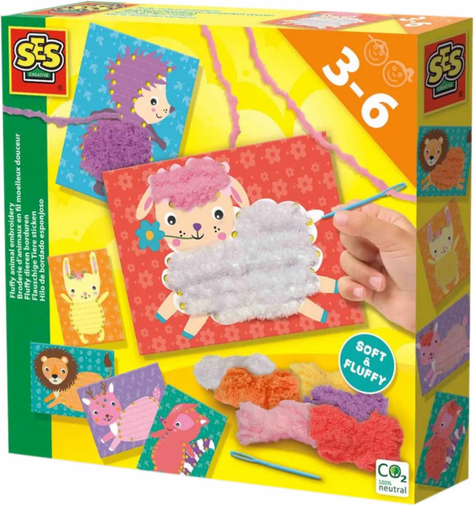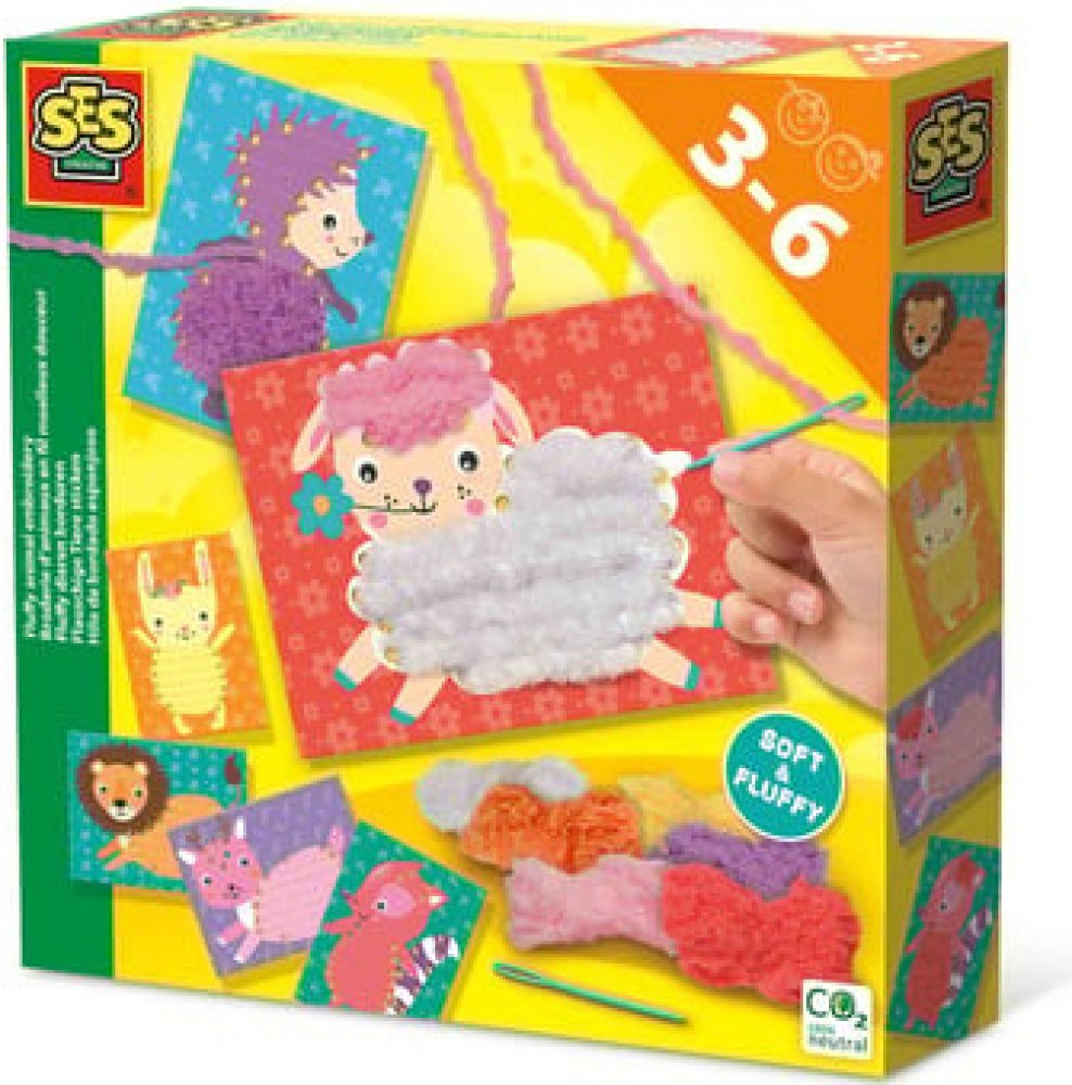 Vyšívání chlupatých zvířátek! Tato sada učí děti, jak vyšívat super měkkou kožešinu pro různá zvířata. Plastová jehla má velké očko, které usnadňuje navlékání nitě.