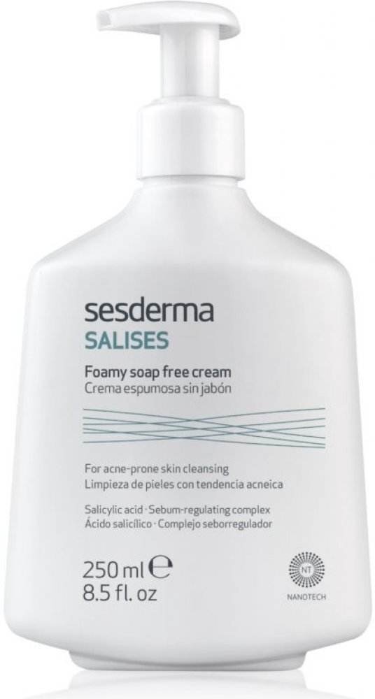 Sesderma Salises Foamy Soap-free Cream, 250 ml, Čištění pleti pro ženy, Než přistoupíte k pravidelné pečující rutině, je velmi důležité připravit pleť důkladným vyčištěním – bez něj by následující péče nebyla zdaleka tak účinná. Přípravek na čistění pleti Sesderma Salises pomůže z pleti odstranit veškeré nečistoty, které se za celý den nebo přes noc na pleti a v pórech usadily, zanechá tak pleť dokonale čistou a připravenou na jakoukoli další péči. Vlastnosti: myje pokožku a zbavuje nečistot vyživuje a pečuje o pokožku zanechává osvěžující pocit matuje pleť Složení: bez mýdlových složek Jak používat: Aplikujte při sprchování či koupeli. Naneste na pokožku celého těla a poté opláchněte teplou vodou. Vhodné pro každodenní použití.