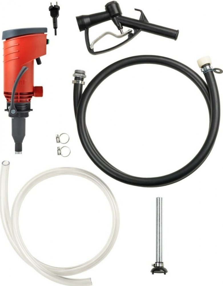 Sestava obsahuje el. čerpadlo na 12V, výdejní hadici 4m včetně výdejní pistole manuálním vypínáním a sací hadici 1,6m se sacím košem.