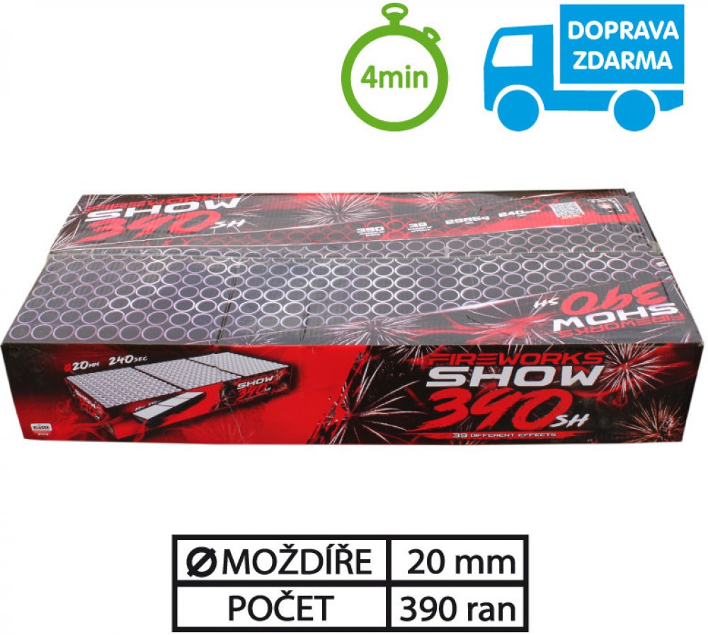 Sestavený ohňostroj FIREWORKS SHOW 390 ran 20 mm