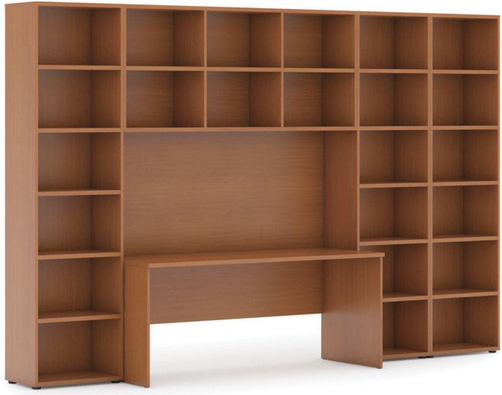 Sestavy knihoven Integro se stolem, vyšší/širší, 3550x700/400x2300 mm, třešeň