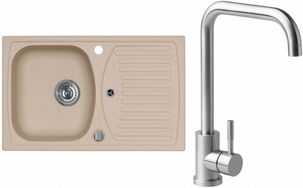 Granitový dřez s odkapem Alveus Record 30 v barevné variantě Béžová je vyroben z přírodního granitu, který obsahuje 80% drceného kameniva s příměsí barviv a pojiv. Díky tomu odolává teplotám až 280 C a je velmi odolný proti vrypu a mechanickému poškrábání.