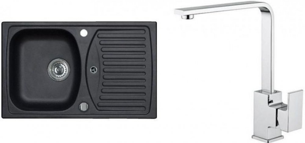 ALVEUS Set RECORD 30 dřez 780x480 mm + baterie RENO, černá