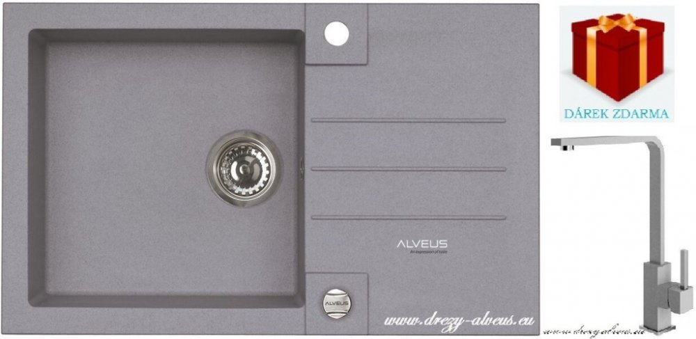 Set Alveus Rock 130 + Afra 81 beton concrete šedý je cenově výhodná sada granitového dřezu s odkapávací plochou a stojánkové dřezové baterie, obojí v moderním šedém odstínu s texturou betonu, která je ideální pro současné interiéry.